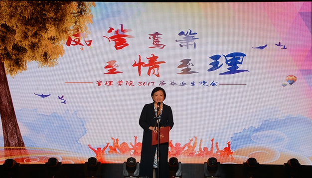 本次晚会共分为三个篇章。在第一篇章开始之前,我院宋梅山副院长为大家带来了亲切且饱含期待的致辞。她祝贺即将踏上新征程的同学们能够在学校里收获许多,同时也很欣慰他们为学校留下了很多。希望大家在未来的旅途中能够谨记校训,践行管院精神,明天的管院将以你们为荣!