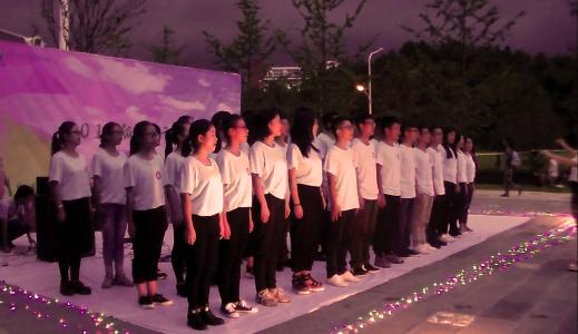 在夜幕里,在习习凉风中,晚会持续向前推进。那积蓄已久的雨滴终于没有在晚会现场落下,而在歌曲《斑马斑马》悠扬的歌声中,军训晚会缓缓落下帷幕。今夜管理学院的同学们欢聚一堂,欢声笑语;在这个夜晚里的每一个同学都将用笑容告别过去,然后整装待发去迎接未来崭新的大学生活。