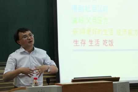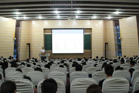 2016年6月6日星期一晚上七点,为了让刚进入大学的新同学们对大学生活有更深刻的认识,并能够正确规划利用好大学时间,“做人、做事、做学问”系列讲座之“做好自己的CEO,提升自己的竞争力——大学生如何做好学业规划和管理”在新区圆形报告厅正式开讲。本次讲座由管理学院院长李烨主讲,管理学院党委副书记于松主持。参加本次讲座的老师有:管理学院学生科科长芮丽华,团委负责人陈芊羽,辅导员李婷婷。到场聆听讲座的同学主要为2015级阳明学院新生。