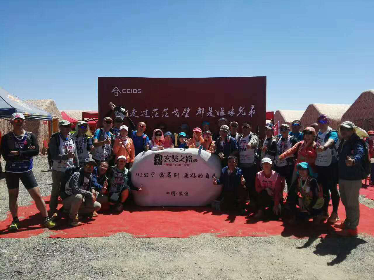 5月22日“第十二届玄奘之路商学院戈壁挑战赛”正式拉开战幕。每年的戈赛都是戈友们向全国乃至国外高校展示贵州大学风采的最佳时刻。在整个赛程中,贵大戈友们始终秉承贵州大学的精神—“理想、行动、坚持”不放弃、坚持再坚持,哪怕身体已经到了生理上的极限,也依然勇敢向前。队友们的相互激励和鼓励,使戈友们坚信:“一起出发、一起到达。”在本次赛事中,贵州大学EMBA戈十二战队的企业家们在戈壁上释放自己,回归自我最真实的一面。他们高举着旗帜、呐喊着口号,在玄奘之路上留下永恒的记忆。