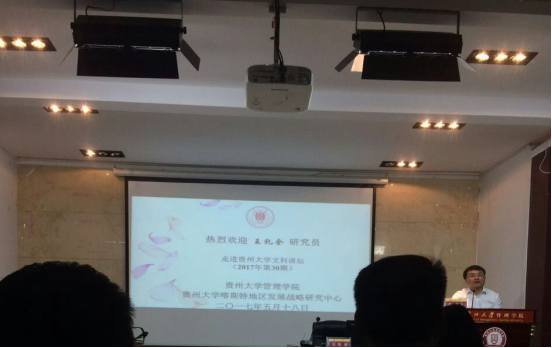 2017年5月18日下午16:00—17:30,贵州大学第30期文科讲坛在管理学院302报告厅开讲。省人大外事侨务委员会主任、人大代表、贵州省首批核心专家王礼全研究员受邀担任主讲嘉宾。报告会由管理学院院长李烨教授主持,学校以及学院师生共同聆听了王礼全研究员的精彩报告。