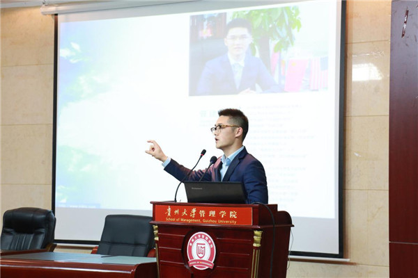 经济学博士、著名独立经济学家、中华博士会执行会长杜猛先生在开幕式上向大会致辞。杜猛先生向与会人员简洁地介绍了中华博士会的创办过程、发展目标与任务,以及双创校园行活动项目的筹划,并认为中华博士会“双创”校园行活动已经成为全国比较有影响力的项目。杜会长提出双创是改善产学研现状一种方式,也是改革意识的实践。他希望通过此次“双创”校园行走进贵州大学活动,能与贵大师生多多交流,也希望能够通过此类活动,推动培养学生成为经济独立、有创新意识、创新行为的高质量人才。
