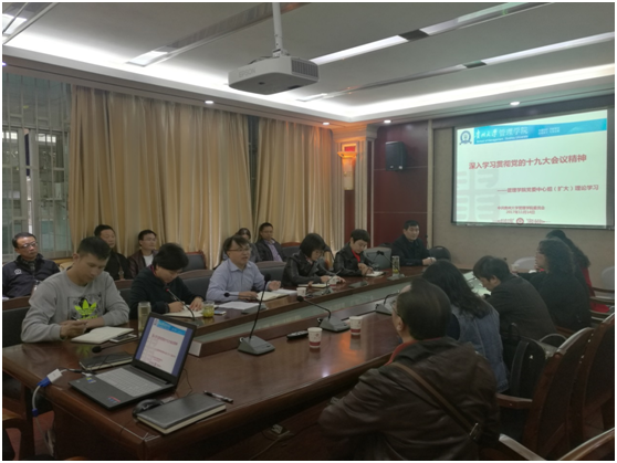 2017年11月14日,学院党委组织党委中心组(扩大)理论学习会议,深入学习贯彻党的十九大精神,学院党政领导、中层干部参会,会议由院长李烨教授主持。
