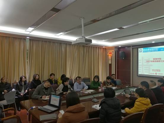 李烨院长从学院发展历史、学院发展愿景、发展总体思路、发展动态定位、学科专业情况、机构、师资、学生、科研平台、对外合作交流等方面向新进教职工介绍管理学院,使得新进教职工全面、深入的了解学院情况。