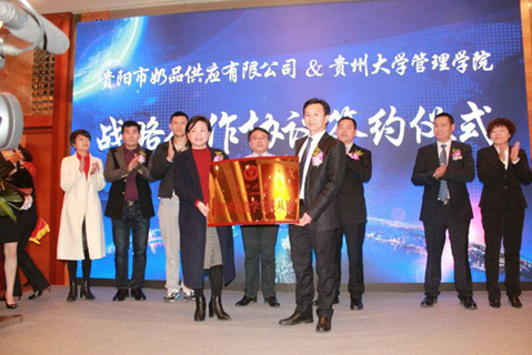 2017年12月23日,李烨院长带队对贵阳奶品供应有限公司实地调研,并与贵阳奶品供应有限公司签订了校企合作框架协议、共建教学实践基地,并举行了授牌仪式。