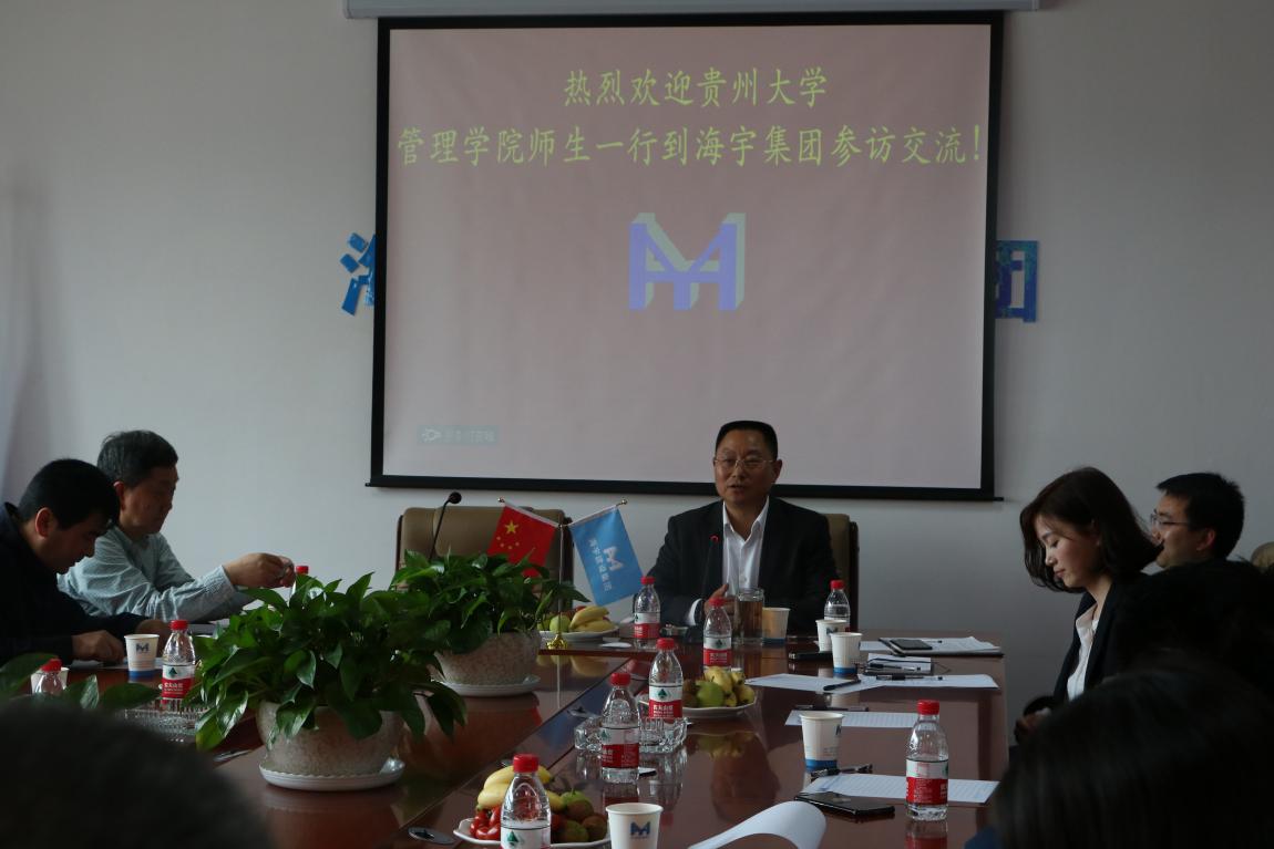 5月11日下午,贵州大学校友总会管理学院分会走进贵州海宇建设集团,企业互访第三站--一场民企经营之道主题分享会拉开序幕。贵州海宇建设集团董事长胡正森先生从自己国企辞职创业开始讲起,讲述了经营民营企业困难重重,并分享了经营民营企业的韬光远略。贵州大学校友总会管理学院分会顾问陶玉顺,副会长兼秘书长张勇,莅临活动现场,交流指导,本次活动的组织者,MBA1505班校友周兰、校友会执行秘书长陆春宝、执行副秘书长杨虹等近30余名校友参加了此次企业互访活动。
