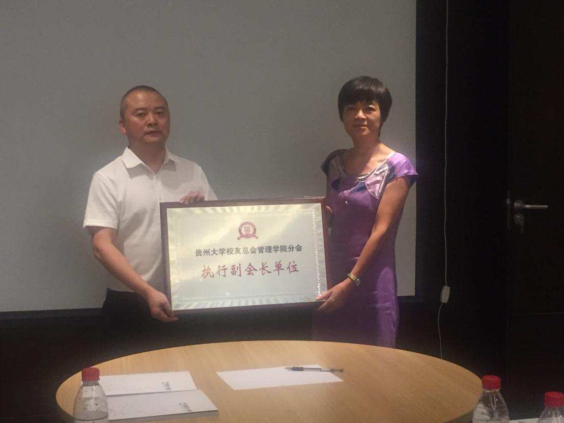 贵州大学校友总会管理学院分会为周永健董事长授牌。