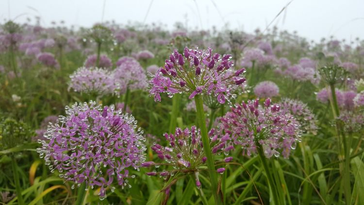 ↑图为雨雾中的韭菜花,散发水晶光泽,美得动人心弦!