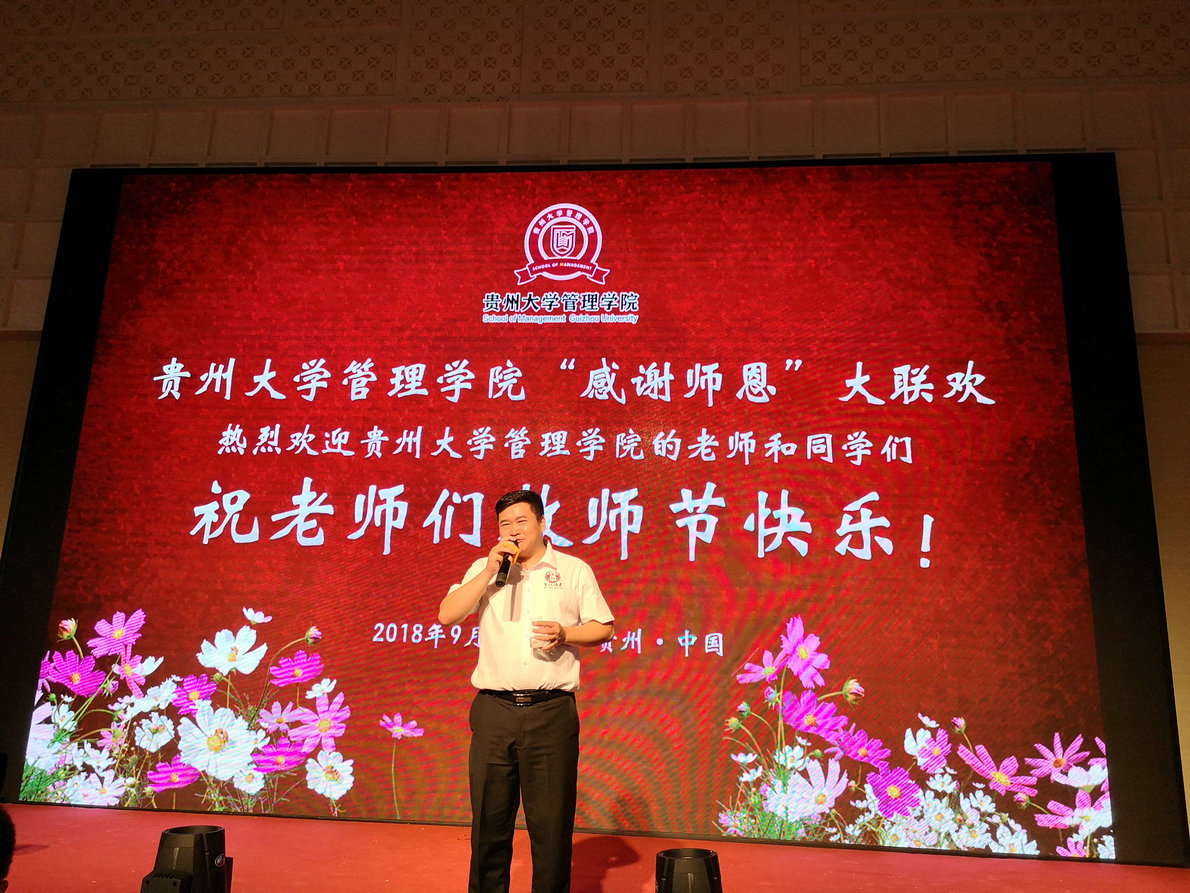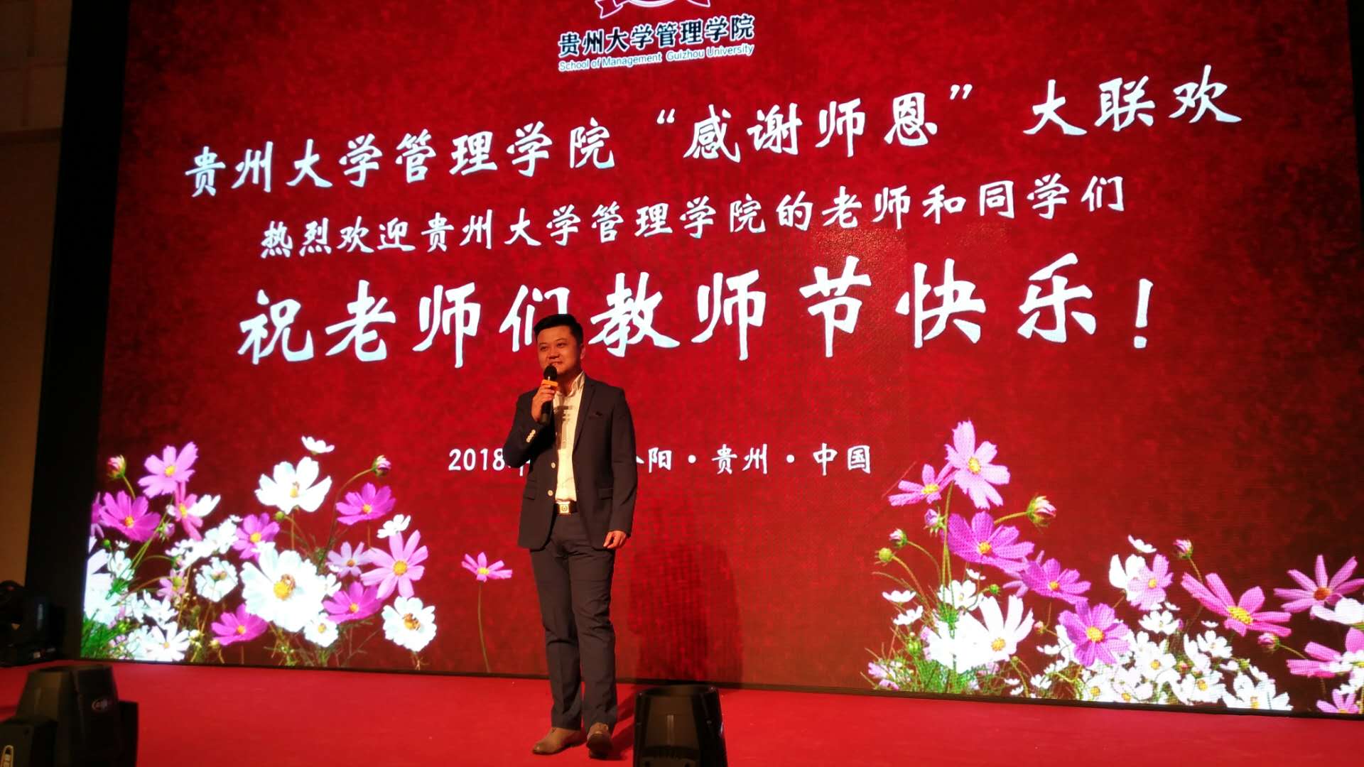 9月10日下午,乐动官方网站校友会大型活动“感谢师恩”大联欢在金阳国窖1573举办,本次活动由乐动官方网站主办,贵州大学校友总会管理学院分会承办,同时贵州国际酒类博览会股份有限公司与牟池酒业赞助支持。时值教师节,贵州大学管理学院院长李烨、副院长王婷、周莉莉、宋山梅,院党委副书记张亚军等200余名师生欢聚一堂,在歌声舞语之中,共同庆祝教师节。