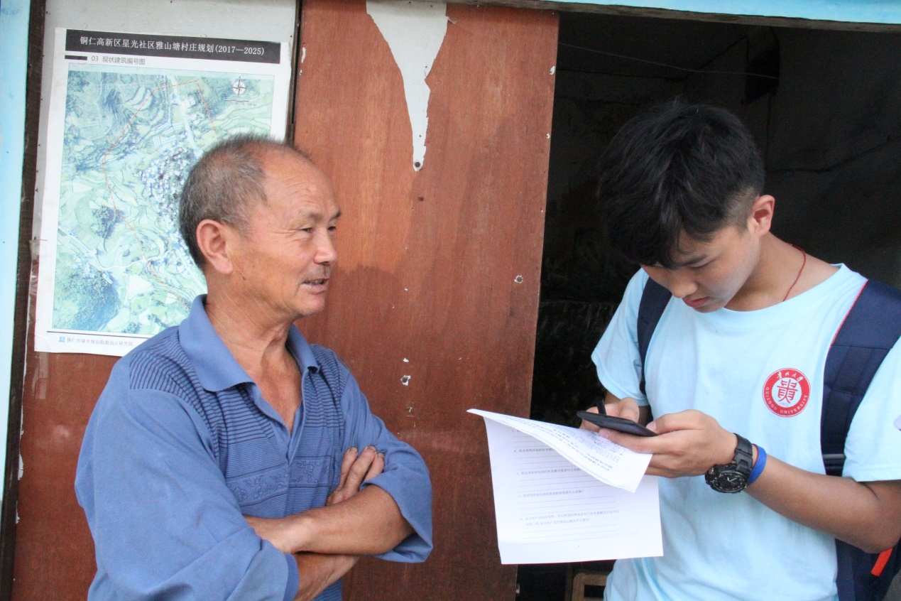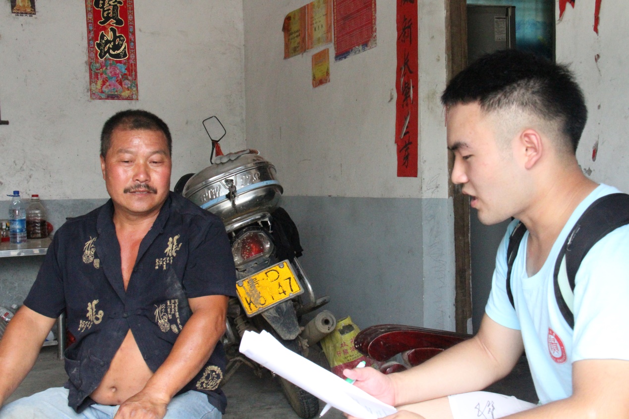4日上午,学院实践服务队经历了两个多小时的徒步时间来到星光村,稍事歇息简单休整之后便开始进行调研活动。首先,服务队来到星光村村委会,向村支书表达了来意并向其了解村民的生活情况。星光村村支书对服务队的到来表示热烈的欢迎并且向队员们介绍星光村的基本情况,同时,村支书还对服务队提出了几点自己的看法:一、深入群众,明白群众需要的是什么;二、运用自己所学的知识以不同的方式去了解群众真正的需要;三、不能走马观花,一定要真正带着目的认真调研,了解百姓真正的生活状况,不能只做表面文章。最后,村支书表示,希望服务队能在基层有所了解与收获。