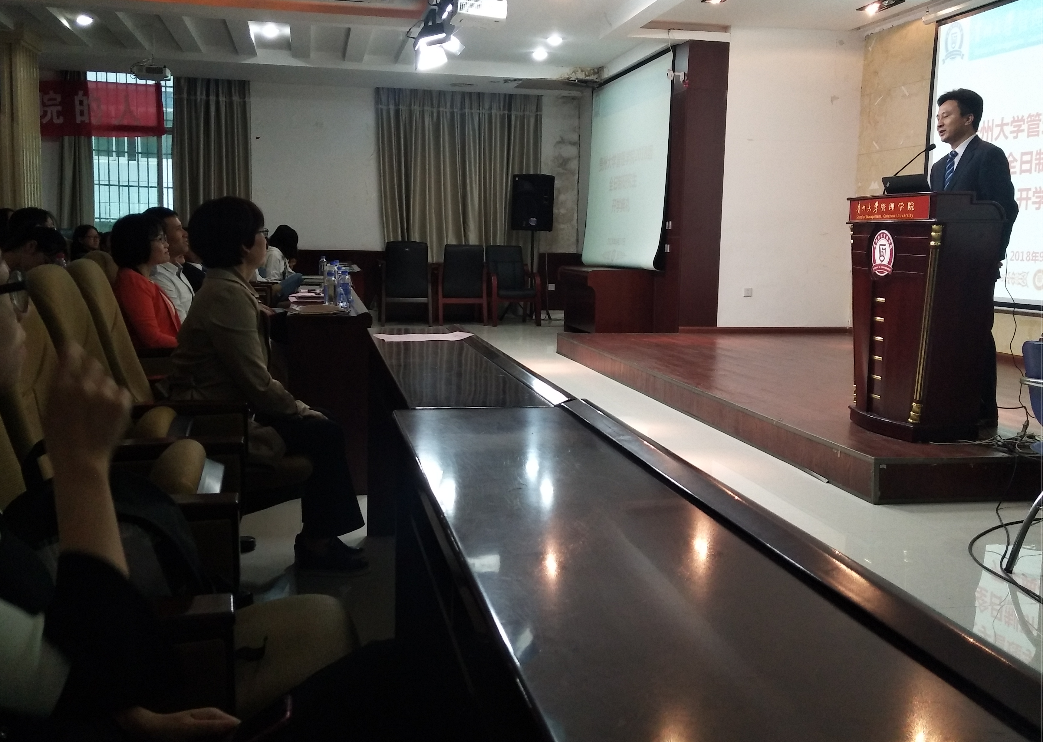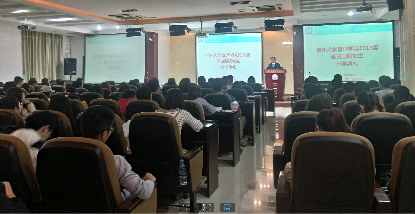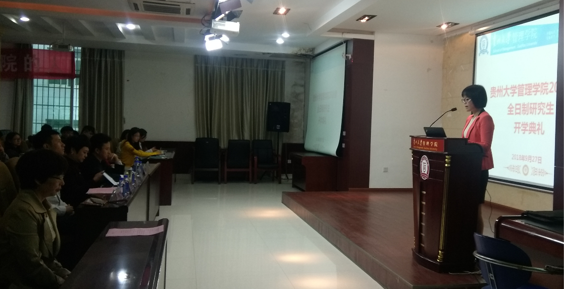 2018年9月27日早上9点,在贵州大学管理学院3楼报告厅举行了2018级研究生新生开学典礼。出席此次典礼的有贵州大学党委研究生工作部罗勇部长、乐动官方网站院长李烨教授、副院长王婷教授、副院长周莉莉教授、副院长宋山梅教授和党委副书记张亚军老师、导师代表安海燕教授以及管理学院2018级全体研究生新生。开学典礼全程由管理学院副院长王婷教授主持,她首先代表全院老师对新同学们的到来表示热烈欢迎,并期盼在今后的研究生生涯中能取得骄人的成绩。管理学院院长李烨教授致辞、导师代表安海燕博士发言、老生和新生代表依次发言,研究生工作部罗勇部长对开学典礼进行总结发言。