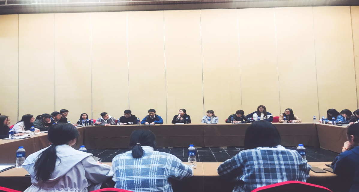 随后,丹寨扶贫工作相关负责人在万达小镇会议室就丹寨产业扶贫项目的具体实施现状、减贫效果和旅游扶贫项目对就业的带动等作用与同学们进行学习和交流。重点对万达集团帮扶丹寨的发展历程和情况以及“党贷富”和“青扶贷”等问题作了详细阐述,并指出丹寨县将于2018年底将完成脱贫工作,并从贫困县中出列。会议最后,与会人员就产业扶贫、金融扶贫等问题进行交流讨论。