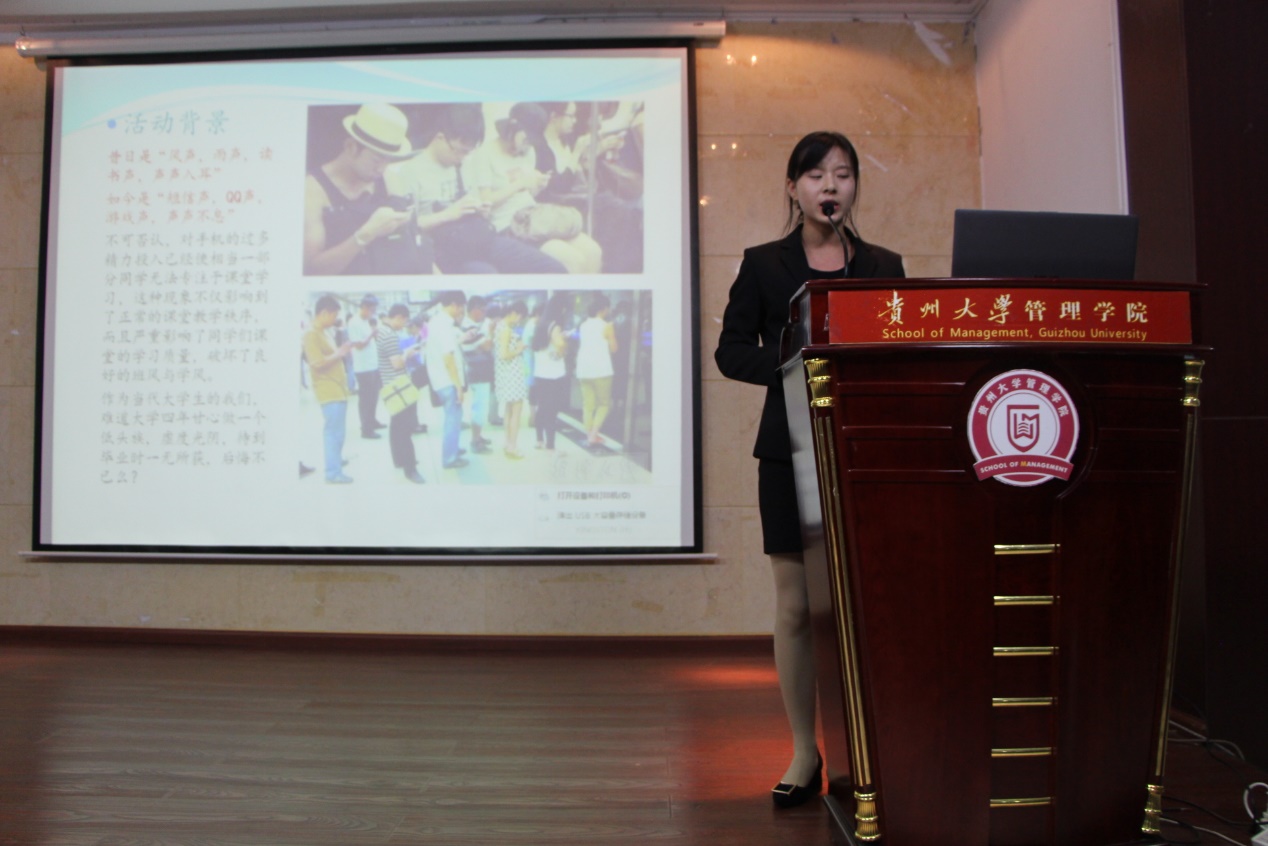 活动的最后由陈老师对此次活动做出总结,并指出了此次活动的优缺点,同时对同学们提出怎样提高自己以及怎样把此次活动做到最好的建议,希望管院学生以自己班级为支点,将无手机课堂的实行送入校园,并希望管院同学为无手机课堂推广献出自己的一份力量。