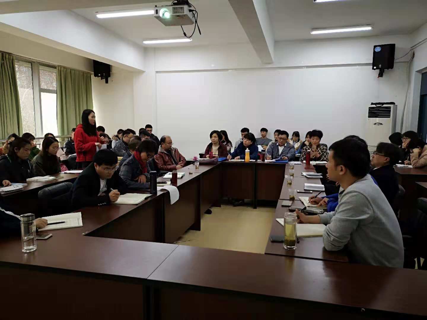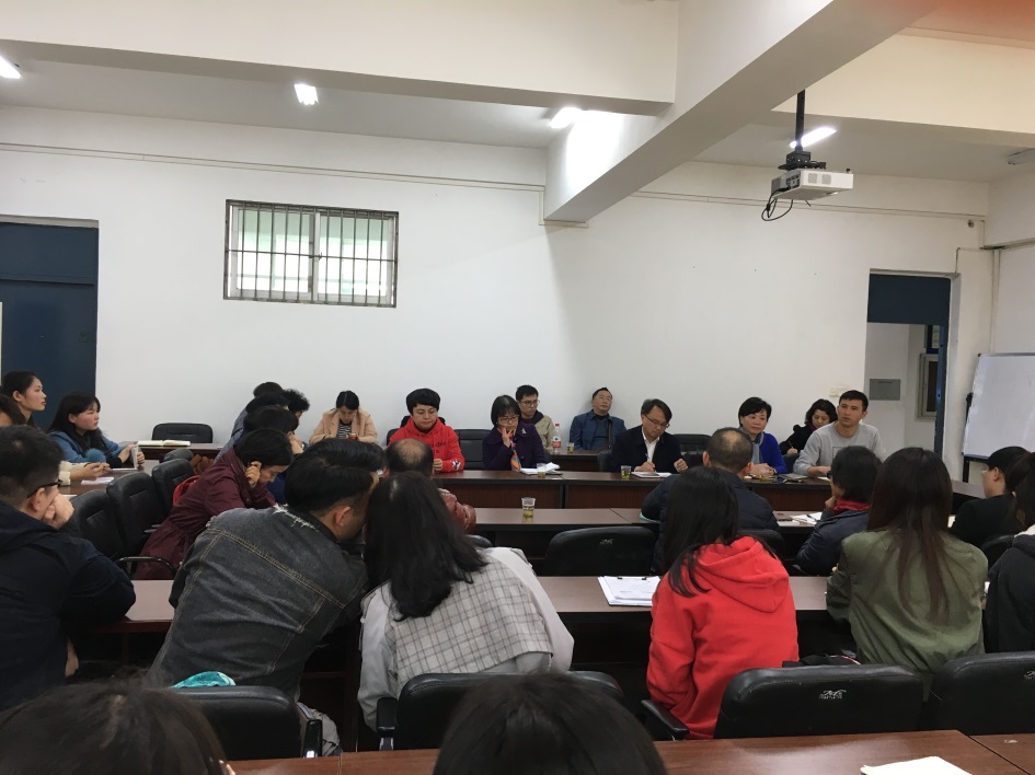 为全面了解教师教学和学生学习情况,听取学生意见、加深师生关系,提高教学质量,根据学院期中教学检查的工作安排,我院于11月29日中午1:00,在学院403教室召开期中教学检查师生座谈会。院长李烨,副院长王婷、周莉莉、宋山梅,院党委副书记张亚军出席会议,校督导团李景勃老师,学院督导组老师,各教研室主任、副主任、教师代表,教学科、学生科老师,及2015-2017级各班学生代表共40余人参加座谈会。会议由分管教学副院长宋山梅主持。