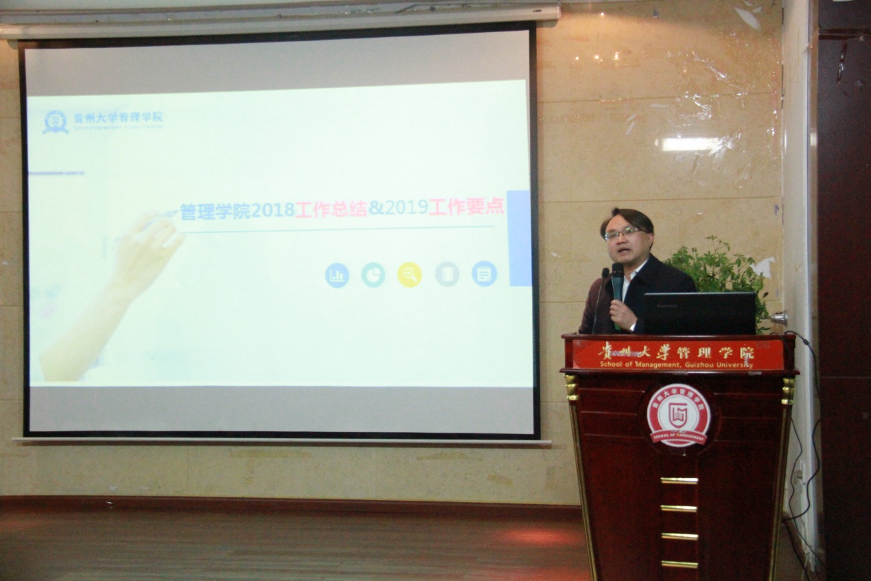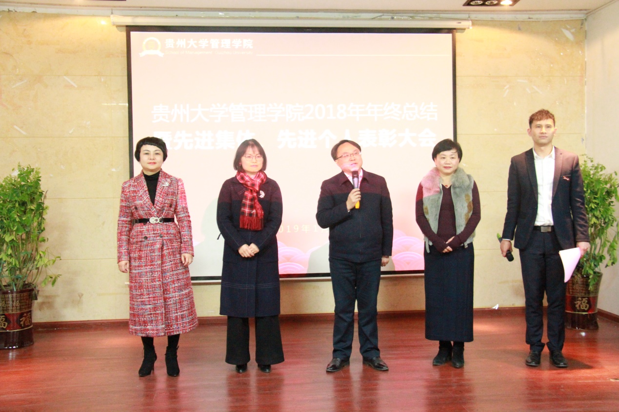 1月11日中午12点50分,乐动官方网站2018年年终总结暨先进集体、先进个人表彰大会于管院三楼报告厅隆重举行。贵州大学哲学社会科学研究院院长洪名勇教授;财务处王斌处长;资产管理处周昌洪副处长;法学院党委副书记、原管理学院副处级组织员洪影秋副教授;对外合作处副处长周乐欣副教授;校督导团李景勃老师以及管理学院近五年退休的各位老师出席本次表彰大会的嘉宾,乐动官方网站院长李烨教授;学院副院长王婷教授、周莉莉教授、宋山梅教授以及学院党委副书记张亚军老师出席本次表彰大会,管理学院全体老师参加此次表彰大会,大会由张亚军副书记主持展开。