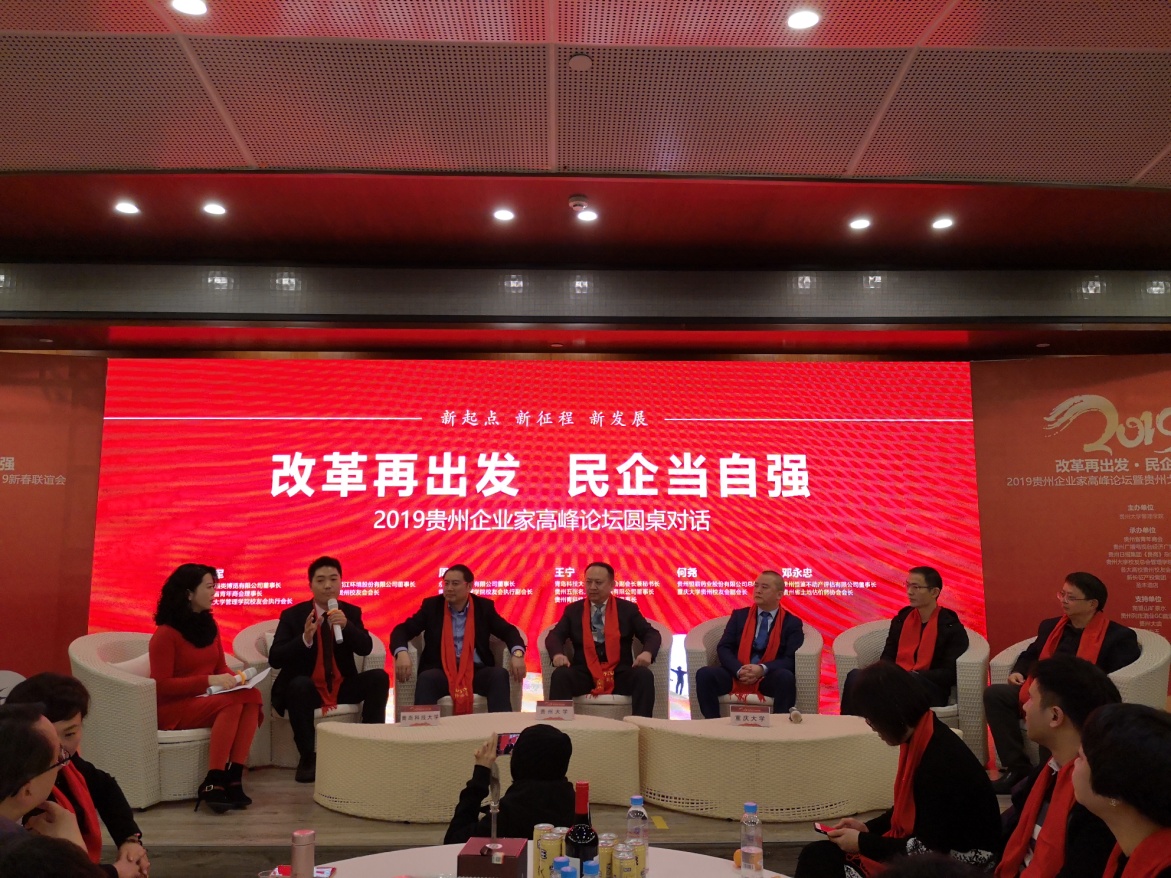 “改革再出发 民企当自强2019贵州企业家高峰论坛圆桌对话”共分为三个章节,开篇主题是“改革再出发,民企当自强”,第二场主题是“民营企业的创新和发展”,第三场主题是“旅文+运动=全新生活方式”。