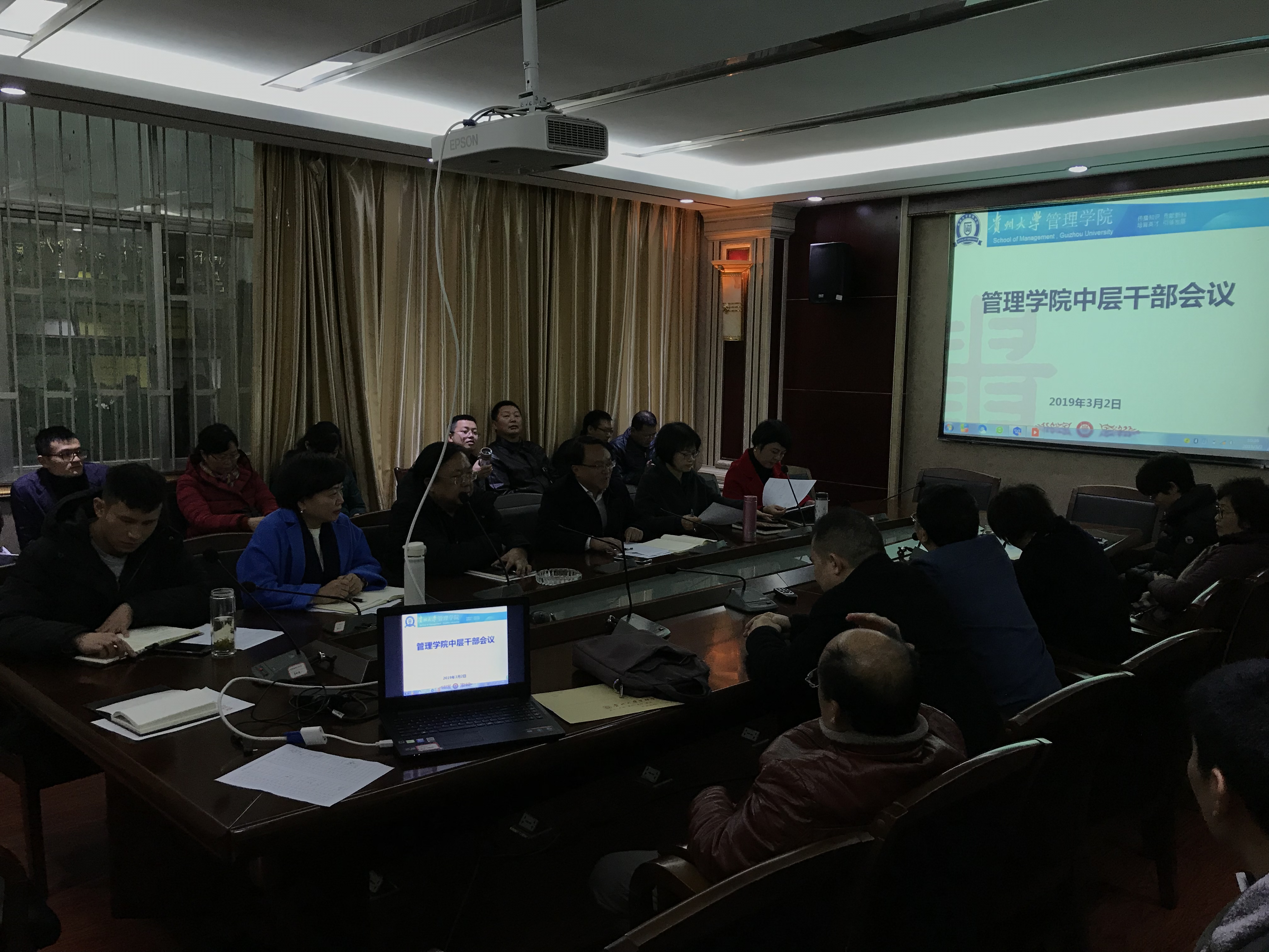 2019年3月2日上午10:30,管理学院组织召开学院中层干部会议,学院党政领导班子、各科室(中心)负责人、系主任、系党支部书记等中层干部参加会议,会议由学院院长李烨主持。