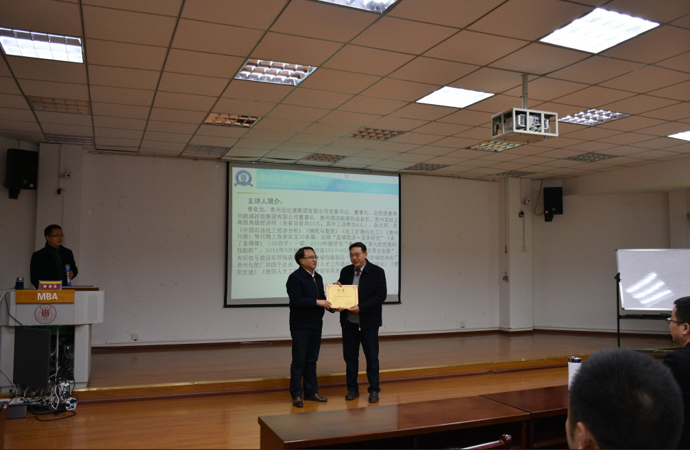 曹垒发董事长为乐动官方网站MBA学生开讲了《贵州化肥厂涅槃重生的启迪》的真实案例,分享了贵州化肥厂改制的艰辛和转型到能源行业五年来的成功及经验。课后在互动环节回答了学生们提出的有关问题。