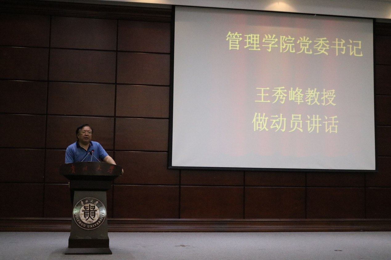 为进一步贯彻落实贵州省普通高等学校征兵工作的要求,号召学院学生积极响应国家号召,携笔从戎,献身国防,报效祖国。管理学院于5月17日中午12:40分在北校区一号行政楼报告厅组织召开管理学院2019年征兵工作宣传动员大会。学院党委书记王秀峰教授;管理学院副院长王婷教授、周莉莉教授、宋山梅教授;党委副书记张亚军老师;党政办公室、教学科研科、学生科、各系主任、学院2016和2017级全体男生参加大会,大会由学生科科长芮丽华老师主持。