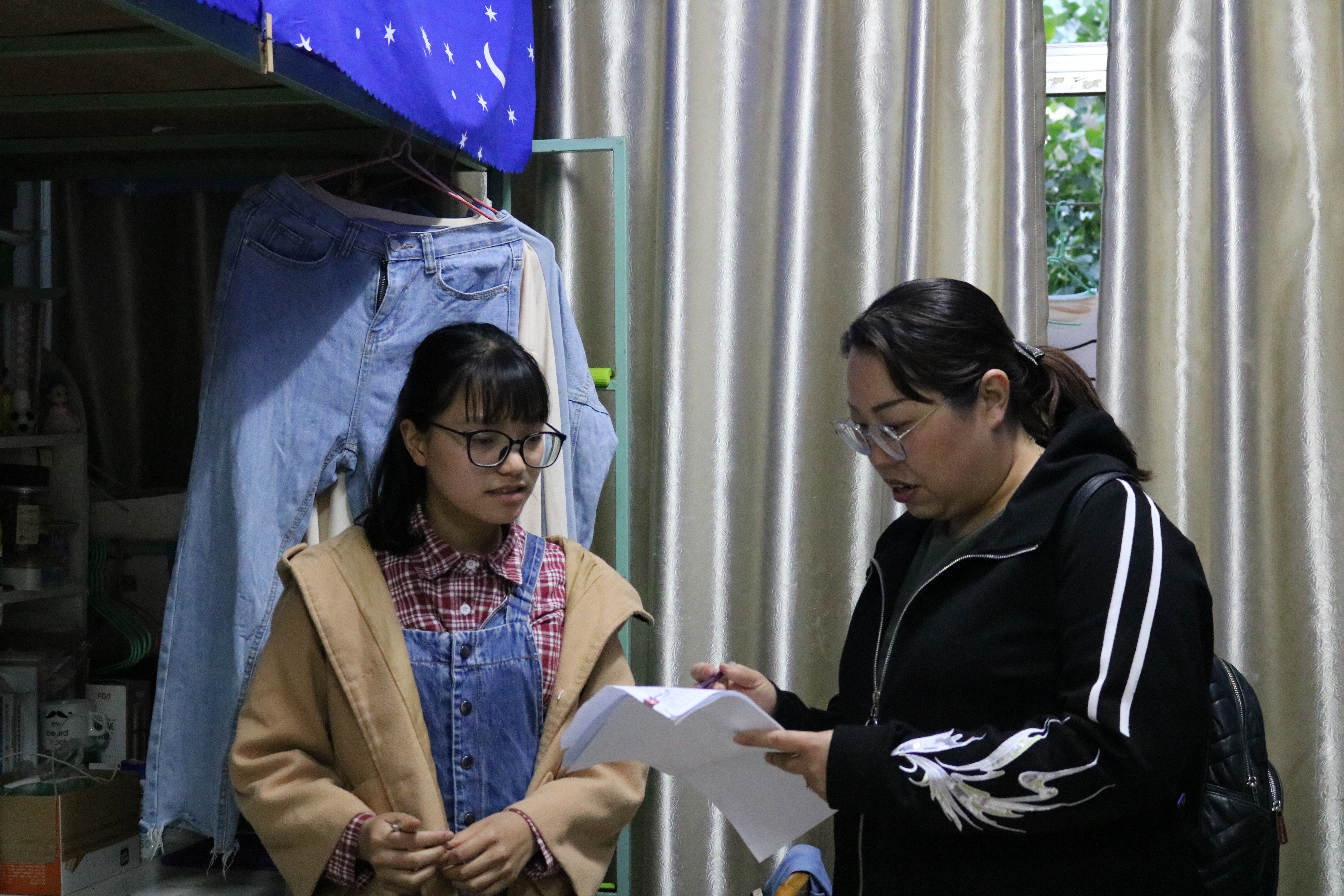 在此次学生寝室安全检查工作中,各位老师通过与同学们进行亲切的交流,对寝室人员是否外宿、是否使用寝室大功率电器进行了解,负责毕业生寝室进行检查的陈芊羽老师耐心询问每一个寝室实习归来人员的情况以及毕业论文完成情况,告知毕业生关于西部志愿者计划的通知,得到了同学们的一致认可和好评。