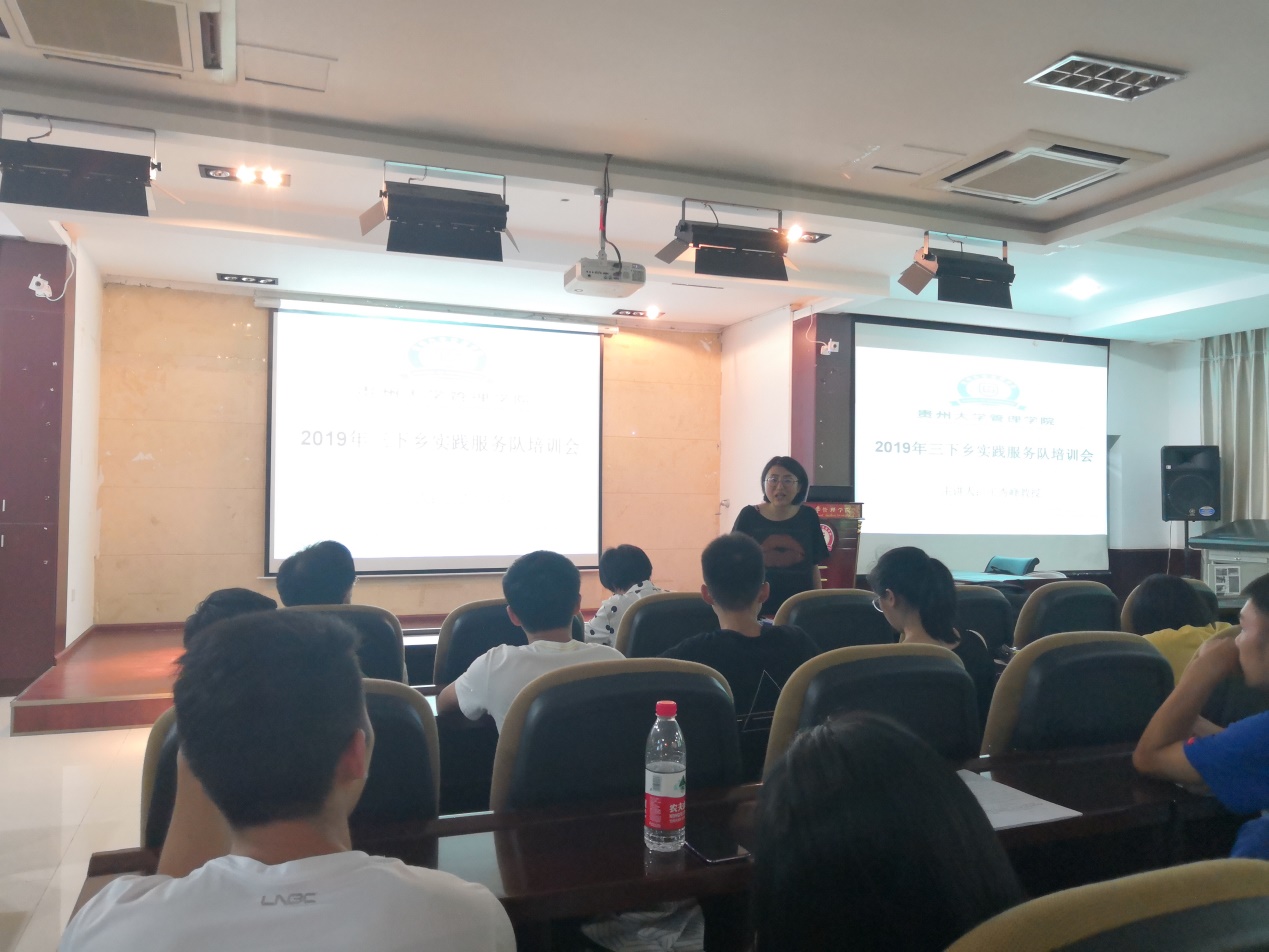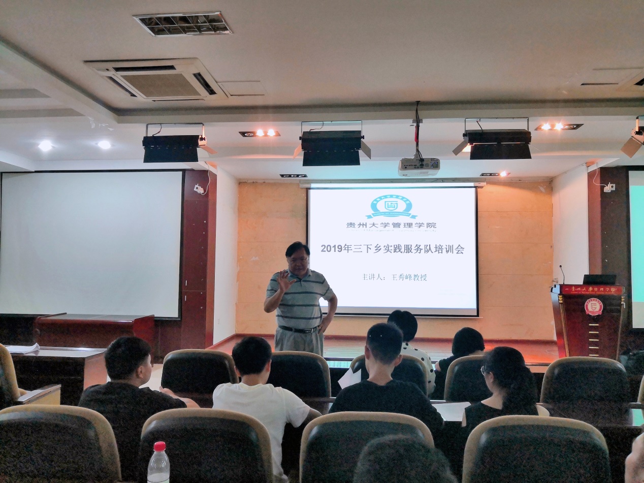 暑期将至,贵州大学各学院开展的暑期实践活动也接踵而来,为了使乐动官方网站暑期“三下乡”实践活动得到顺利开展,7月29日14:30,乐动官方网站“三下乡”培训大会暨安全教育大会在学院三楼报告厅举行。学院党委书记王秀峰教授、团委负责人陈芊羽老师、学生会秘书长车婧娴老师出席本次大会,参加本次大会的还有管理学院暑期“三下乡”实践服务队的各同学。
