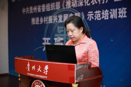 据悉,“推动深化农村产业革命、推进乡村振兴发展专题”示范培训班是为贯彻中共贵州省委组织部关于印发《2018——2022年贵州省干部教育培训规划》中“四项重点工作计划”的通知,实现优化分类分级培训体系,进一步加大干部专业化素质能力培训力度,着力建设定位精准、功能完善、资源丰富、高效运行的干部教育培训保障体系而量身定做的培训项目。本次培训班为期五天,课程包括《贵州主导产业与特色产业培育与发展》、《贵州农村专业合作社如何规范高效发展及其在乡村振兴中发挥引领带动作用》、《精准选择优势产业、深入推进农村产业革命》、《推广“龙头企业+合作社+农户”组织方式,深入推进农村产业革命》、《贵州山地乡村产业振兴:案例、模式与方法》、《农业供给侧改革——浅析供给侧改革在农村产业融合的可行性》、《贵州产业扶贫有机衔接乡村产业兴旺的思路》、《创新驱动与贵州农业产业转型升级发展》。首期学员来自各县(市、区)党政分管领导、相关部门负责人。