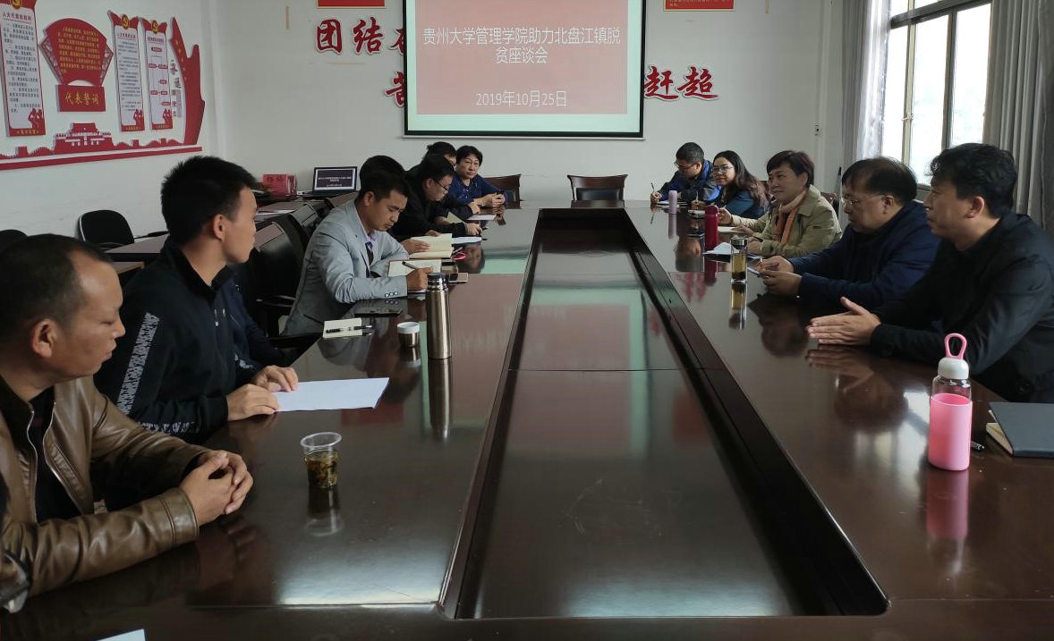 为深入贯彻落实省委、省政府2019年脱贫攻坚春季攻势行动令和学校党委《2019年贵州大学脱贫攻坚行动方案》、《中共贵州大学委员会助力脱贫攻坚“一院一品”行动计划实施方案》和《中共乐动官方网站委员会2019年助力脱贫攻坚“一院一品”行动帮扶计划》要求,为充分发挥管理学院的学科专业优势和人才智力优势,整合社会资源,围绕学院扶贫点贞丰县北盘江镇的实际需求,2019年10月24日至25日管理学院党委书记王秀峰带队,副院长宋山梅、王茂春教授等一行赴贞丰县北盘江镇开展脱贫攻坚项目推进调研工作。