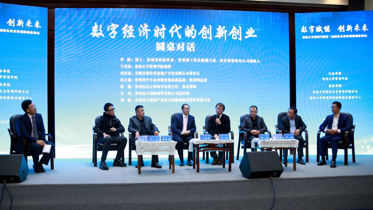 论坛上贵州省科协常委、贵州博士俱乐部副主席、硅谷智慧科技公司创始人李彬博士、乐动官方网站教授王茂春,安顺市稻谷香房地产开发有限公司董事长袁征福,贵州省中小企业服务集团副总裁、乾贷网总裁孙大奎,贵州法以正律师事务所主任、执业律师张毅,贵州众天瑞鹏商贸有限公司总经理吴荣,贵州省大数据产业技术创新战略联盟常务秘书长刘波7位嘉宾以“数字经济时代的创新创业”为主题进行圆桌对话,展开激烈的思想交锋,分享了各自的观点和看法。