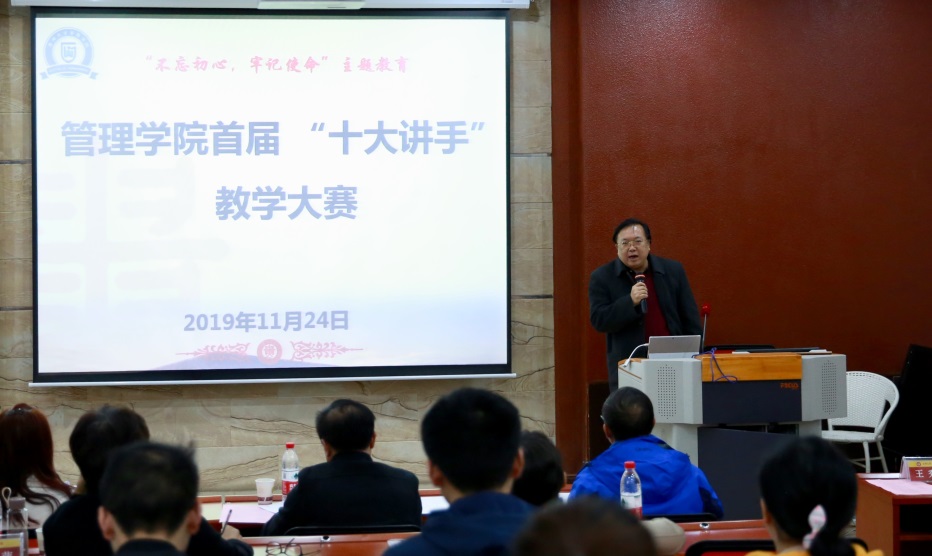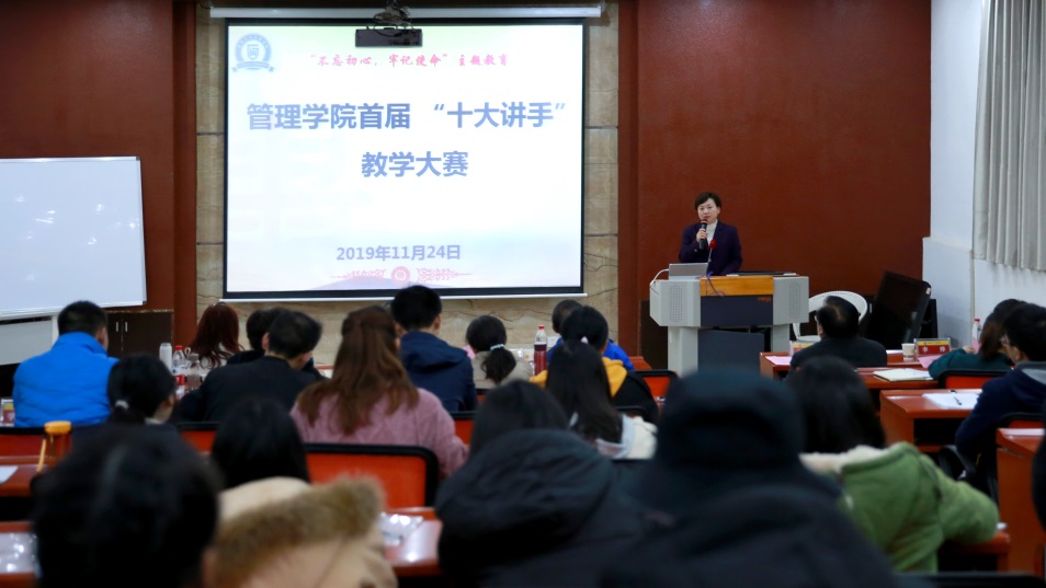 为将 “不忘初心 牢记使命”主题教育落实到学院实际工作中,紧扣立德树人的根本任务,紧紧围绕为党育人、为国育才的教育使命,优化教学过程,提高课堂教学效率,提高人才培养质量,我院于11月24日上午8:30-下午3:00在管理学院102教室成功举办首届“十大讲手”教学大赛。