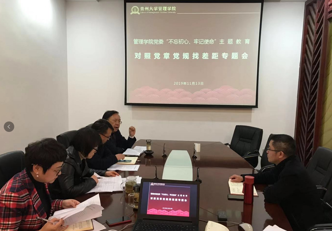 管理学院“不忘初心、牢记使命”主题教育 组织开展对照党章党规找差距专题会议