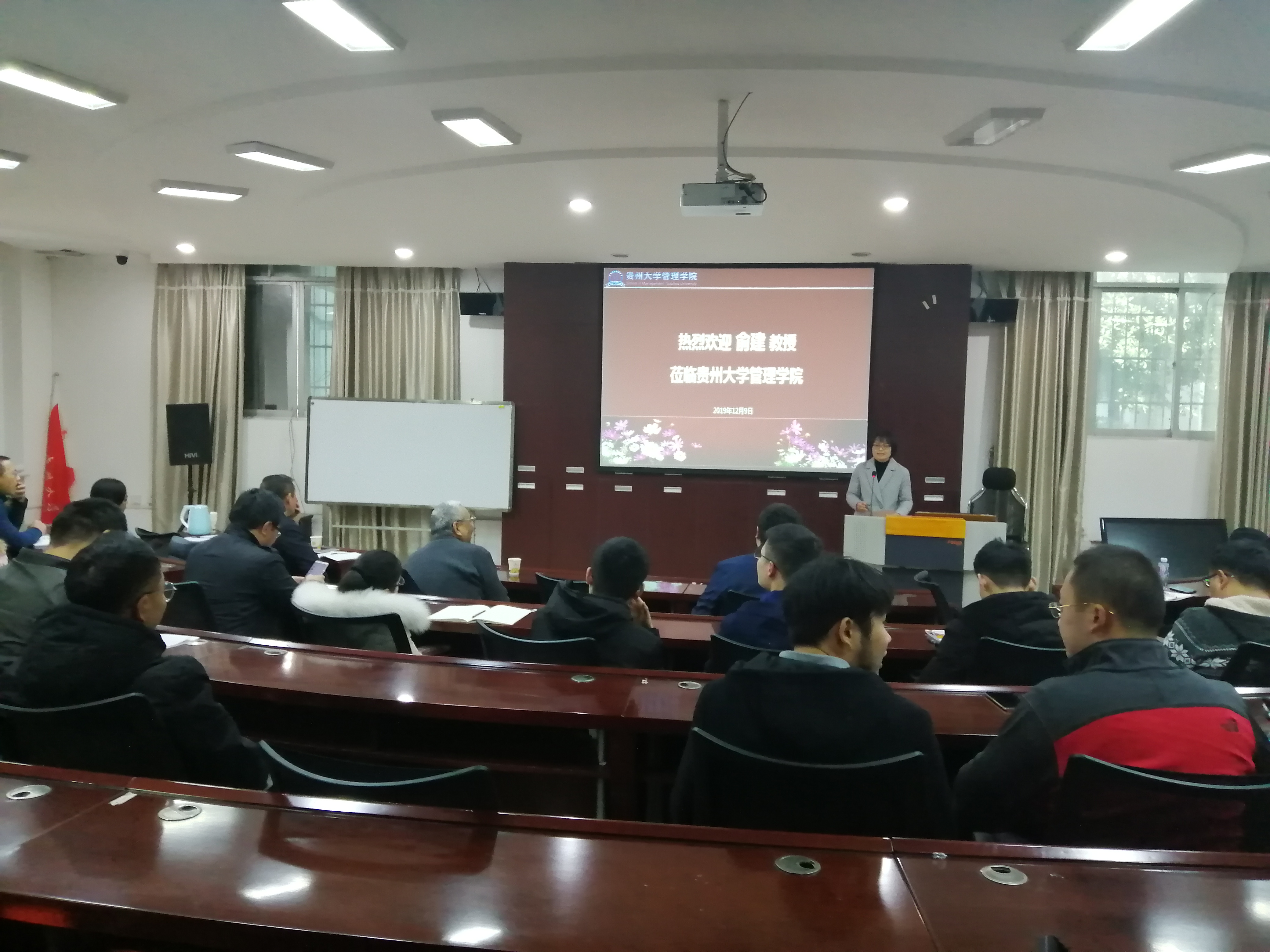 12月9日下午15:00,贵州大学数学与统计学院俞建教授莅临乐动官方网站,在管理学院一楼圆形教室报告厅做了题为“博弈论与数理经济学”的专题讲座。讲座由管理学院副院长王婷主持,管院部分教师及2018级全体研究生到场聆听。