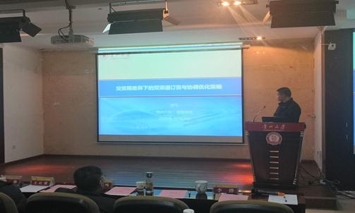 最后是博士生徐飞报告了“交货期差异下的双渠道订货与协调优化策略”,报告内容从两个渠道的合作机制、需求风险时的定价策略等方面来研究双渠道供应链的协调与优化。此次报告持续了三个小时,在聆听了各位老师的报告之后在座师生就自己所疑惑的点积极与汇报老师沟通交流,让在座师生受益匪浅。