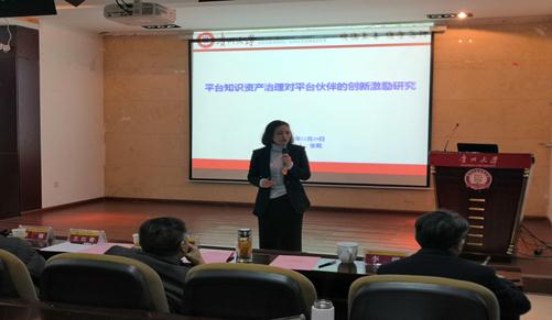 由贵州省系统工程学会主办,乐动官方网站承办的贵州省系统工程学会2019年度学术研讨会于2019年12月29日上午9点在管理学院三楼报告厅隆重举行。出席此次会议的有贵州省科协学会部蔡娜副部长、贵州系统工程学会理事长王红蕾教授、副理事长武鸣教授、贵州大学哲学社会科学院陈爱东副院长、乐动官方网站党委书记王秀峰教授、院长李烨教授、副院长王婷教授以及为此次会议做学术报告的章莉南子、张莉、范慕炜三位老师及在读博士生徐飞同学。管理学院2018级全体研究生参加了此次学术研讨会。