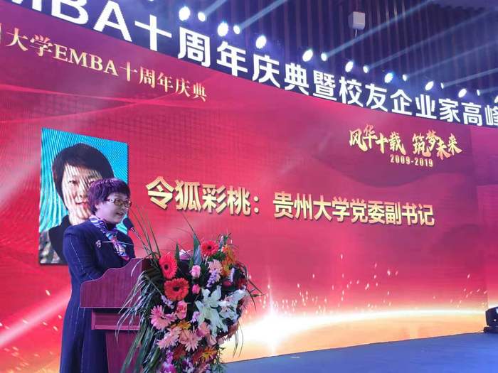 贵州大学党委副书记令狐彩桃号召大家为把贵州大学EMBA项目打造成为西部一流、全国知名的EMBA品牌继续努力前行。她强调,未来,贵州大学将进一步加强与各单位、部门的沟通、协作,持续推动贵州大学EMBA项目高质量发展,为社会培养更多更好的高级管理人才,为贵州企业家的健康成长、为贵州企业的健康发展奠定坚实的基础。