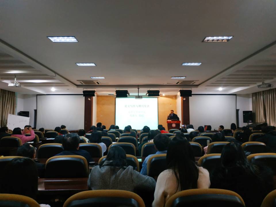 12月31日上午9:30,南开大学商学院程新生教授应邀来我校管理学院进行学术交流,于管理学院三楼学术报告厅做了题为“管理学期刊特征分析与发表”的专题讲座。讲座由管理学院院长李烨教授主持,管院部分教职工及2019级全体研究生、博士生到场聆听。