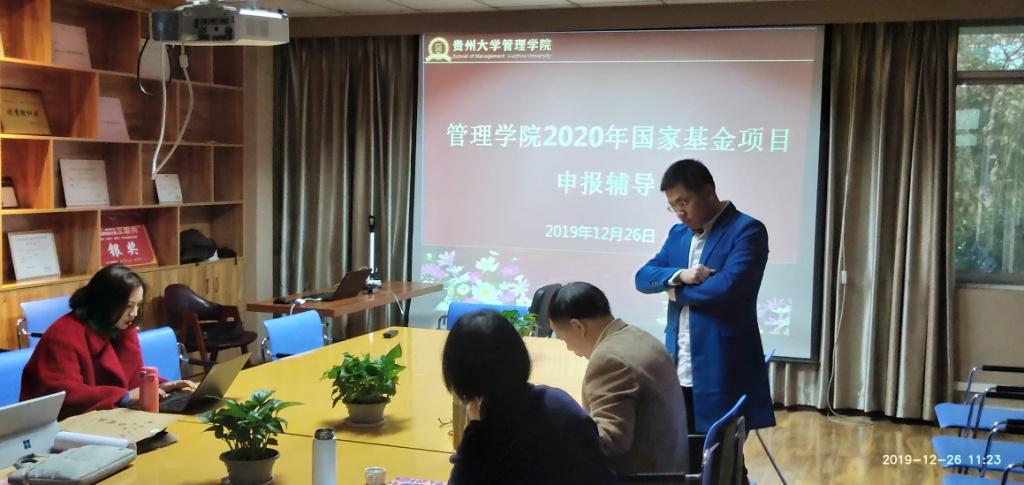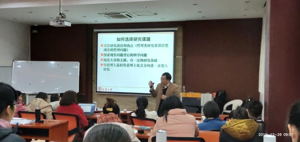 2019年12月26日上午9:30,乐动官方网站邀请了天津大学管理与经济学部何桢教授,在管理学院102报告厅为我院教师进行申报2020年度国家基金的辅。,辅导活动由王婷副院长主持,管理学院部分教师和全体博士生、研究生同学参加本次辅导活动。