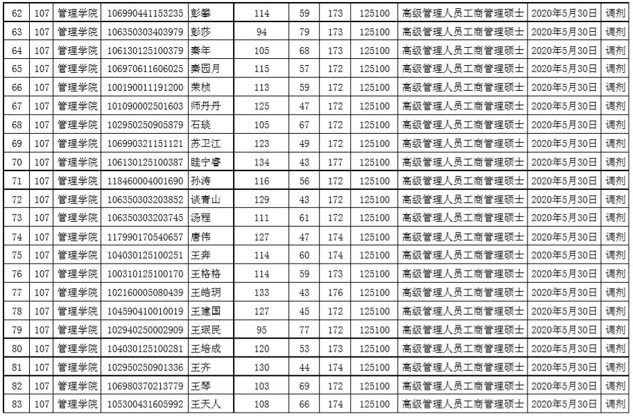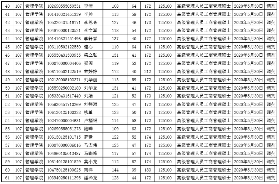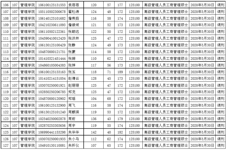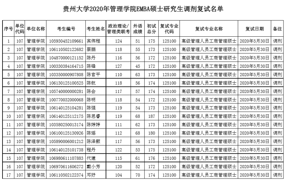 贵州大学2020年管理学院EMBA硕士研究生调剂复试名单