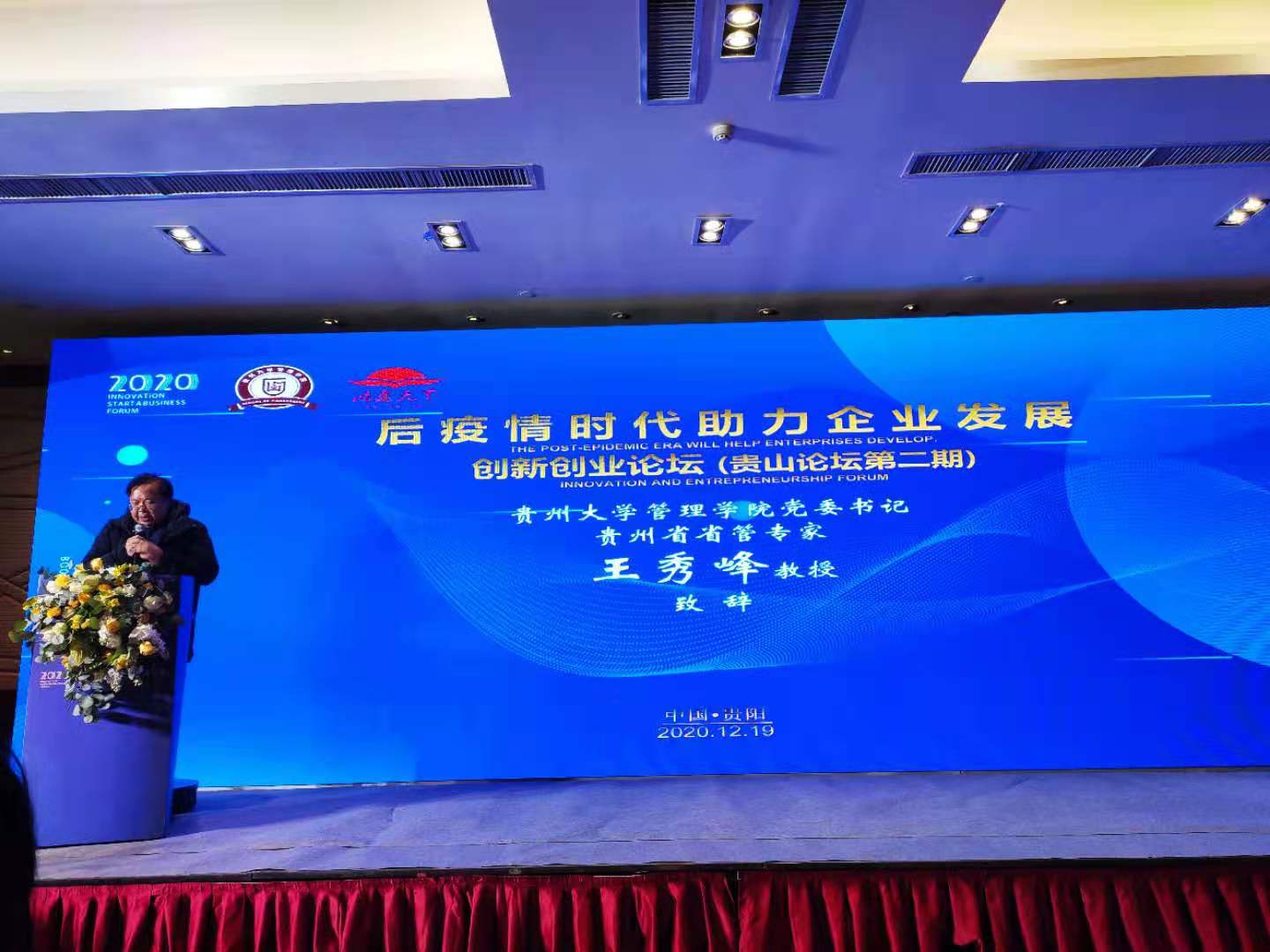 贵州大学管理学党委书记王秀峰向论坛致辞并作主旨演讲。王秀峰书记将创新创业与贵州脱贫攻坚和乡村振兴深度融合,通过一系列乡村振兴的典型案例分析,深度解析了新的发展阶段山区乡村振兴的政策机遇、消费升级机遇,指出山区乡村要充分发挥比较优势,才能在新阶段实现高质量发展,助力国家乡村振兴战略。