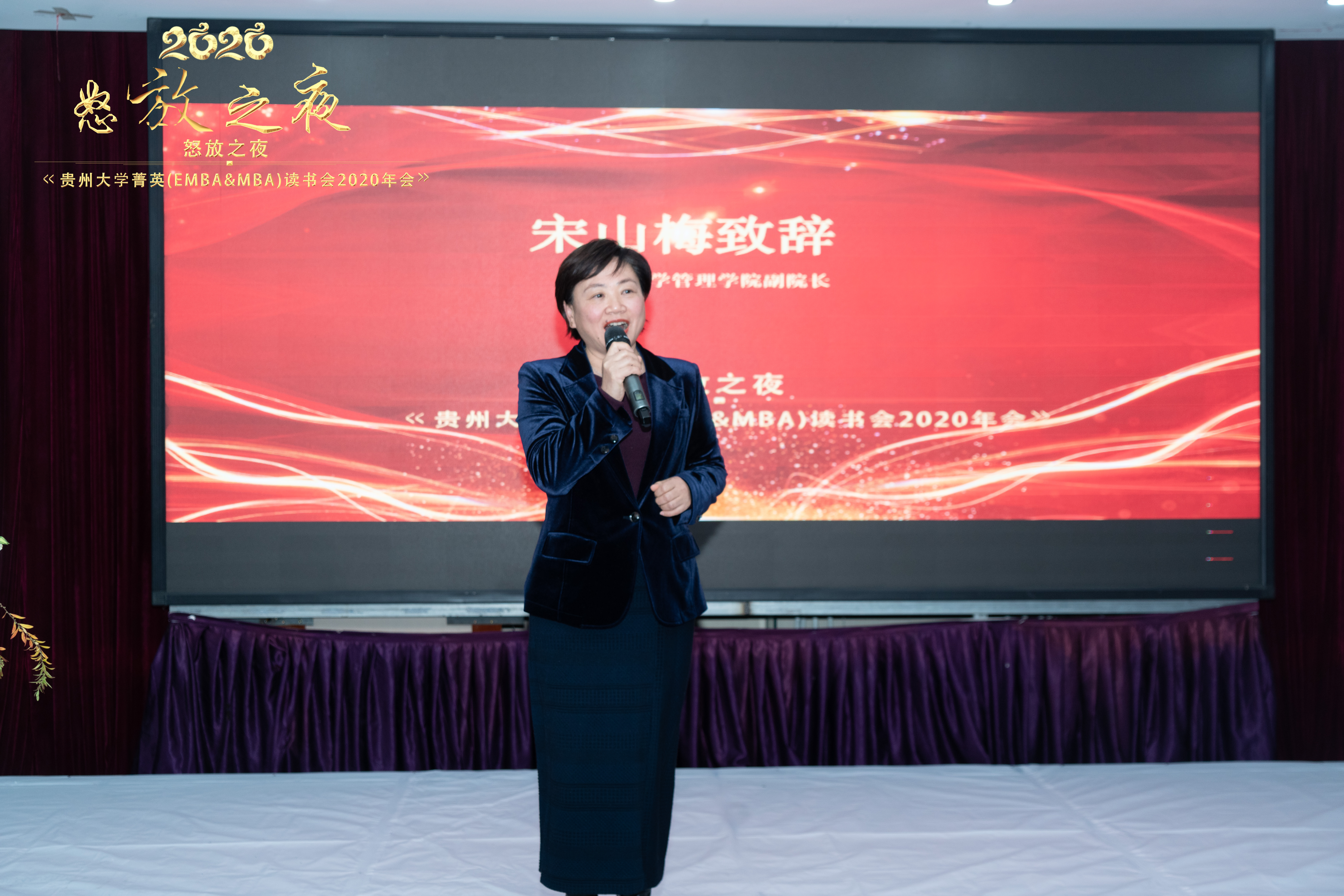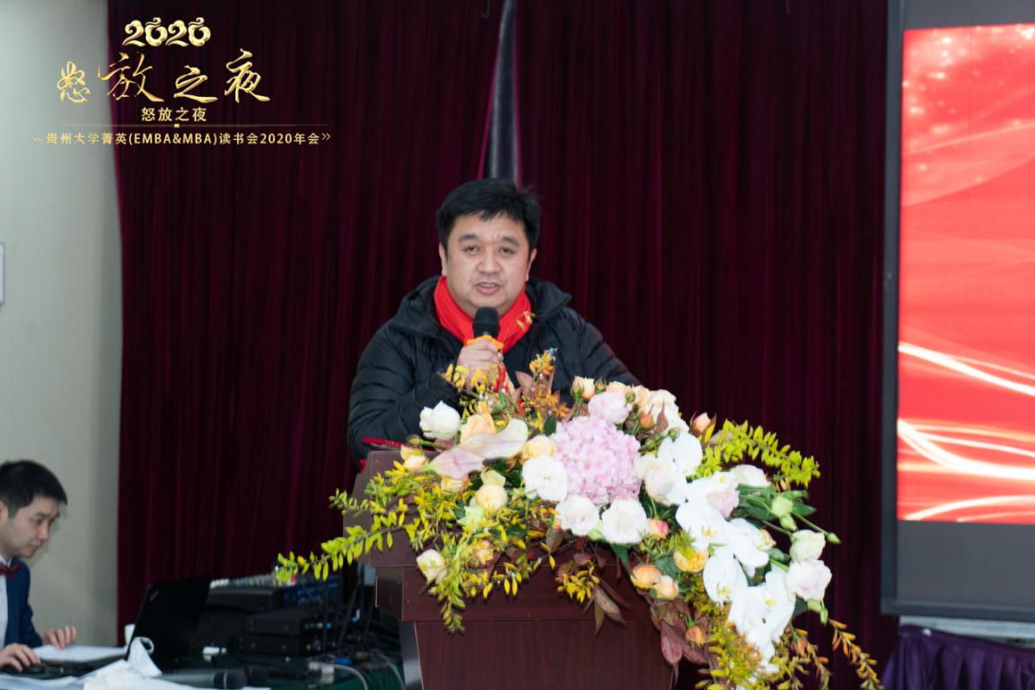 2020年12月20日贵州大学菁英(EMBA&MBA)读书会在“奥斯汀怡景酒店润和厅”举办了主题为“怒放之夜”的2020年年会活动,一扫庚子阴霾,开启未来的红运!乐动官方网站副院长宋山梅、罗敏,乐动官方网站EMBA主任李雨峰、乐动官方网站MBA主任项凯标、乐动官方网站对外合作办公室主任王云,读书会主席团成员袁征福、陆春宝、杨再英、牟道勇,读书会荣誉会长罗纲举、王寅春,读书会第三届会长赵宇出席了本次活动。特邀嘉宾为贵州大学对外合作处处长刘颖、民建省直十二支部副主委廖铁松、贵州佰仕佳集团董事长易永祥。主持人为吴睿迪、陈隽宁。