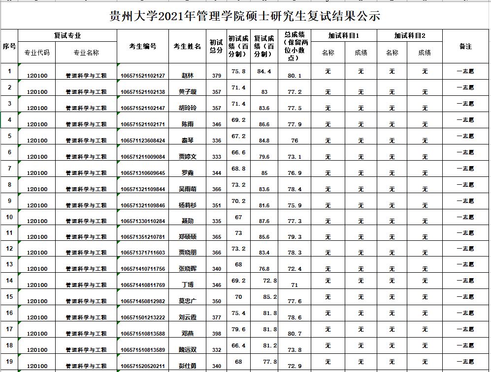 贵州大学2021年管理学院硕士研究生复试结果公示