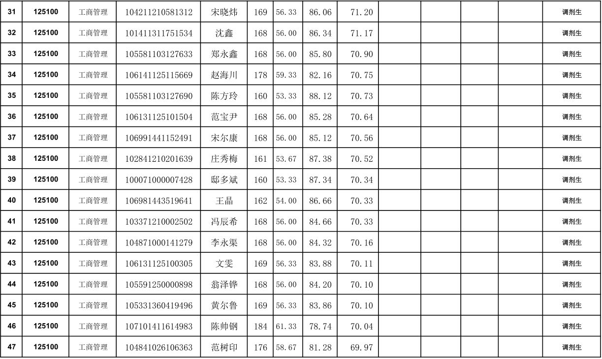 贵州大学 2021年管理学院 EMBA 硕士研究生调剂复试结果公示