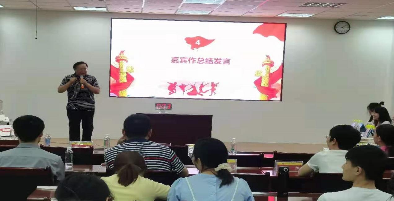 王秀峰书记作总结发言。他表示,本次活动集趣味性、知识性与参与性于一体,丰富而生动,有益于引导学院同学们更加深入地学习党史。他指出,在建党100周年之际学习党史,能够让我们更清晰的了解我们国家在站起来、富起来到强起来的历程中不可或缺的是中国共产党的领导。他强调,作为新时代培养下的党员干部群众,应铭记历史、不忘初心、砥砺前行。