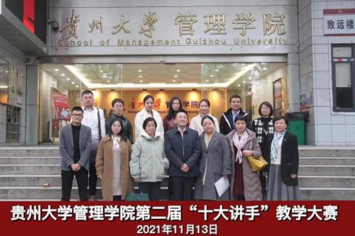 为提高人才培养质量、加强师资队伍建设,11月13日,管理学院第二届“十大讲手”教学大赛于东校区致远楼101教室举办。我院领导王秀峰、洪影秋、周莉莉、宋山梅出席大赛,贵州大学青年教师教学竞赛训练营教练组组长林岚涛、经济学院副院长许鹿、管理学院副院长宋山梅、法学院李萍教授、外国语学院万亨悦副教授、电气工程学院唐晓玲副教授、管理学院工商管理系主任许为宾副教授等7人担任大赛评委。此次共有20名教师参赛,比赛由学院教学科科长李静主持。