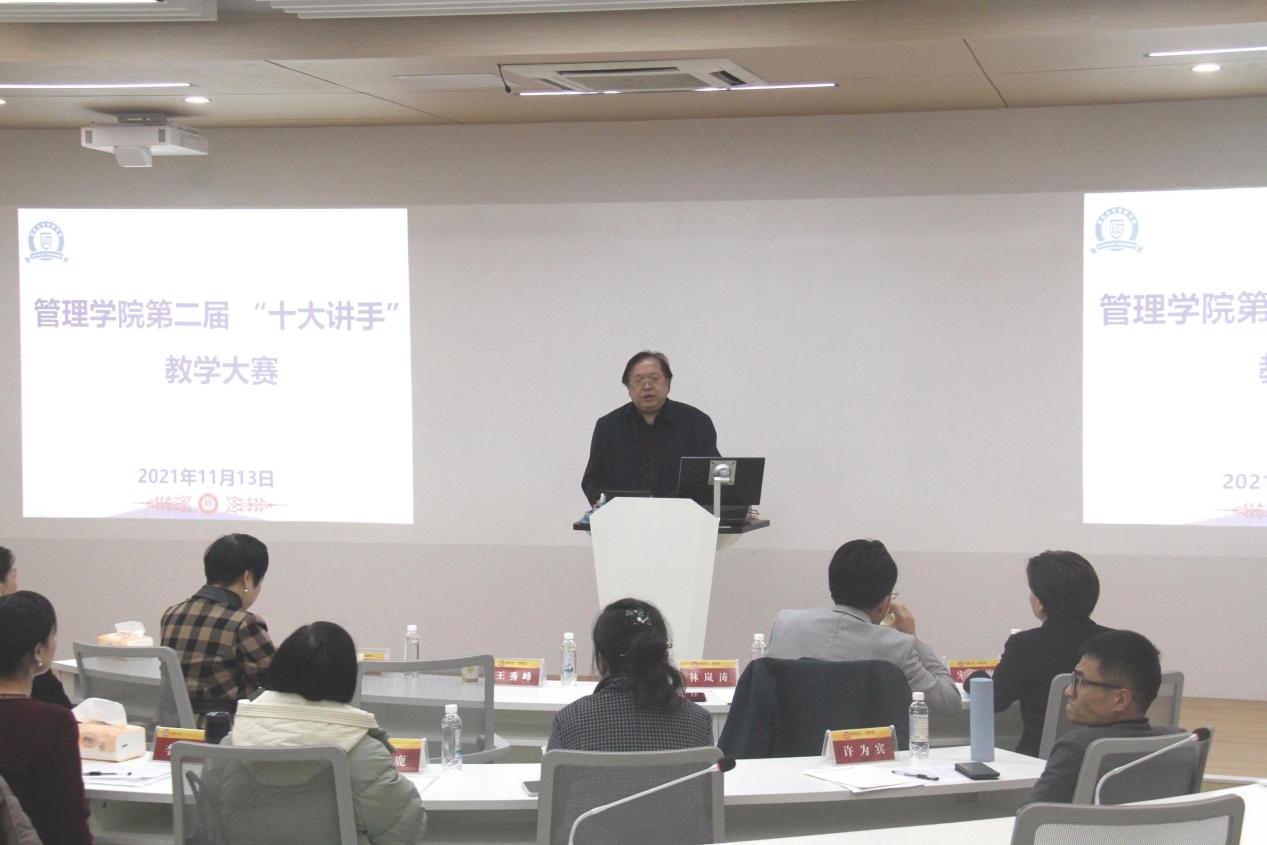 赛后,林岚涛教授对各选手进行点评。他说到,我们感受到各位选手对本次比赛的充分重视,老师们在教学过程中张弛有度,态度从容,拥有很强的迸发力,并对参赛选手的教案、教学组织语言和教态板书等方面做了综合评述。同时他指出,教师们PPT设计水平整体有待提升,文科教师与工科教师在教学方式方面需要相互借鉴和学习,并对教师们寄予厚望,希望教师们能够积极参与相关教学技能大赛,不断提高自身教学水平。