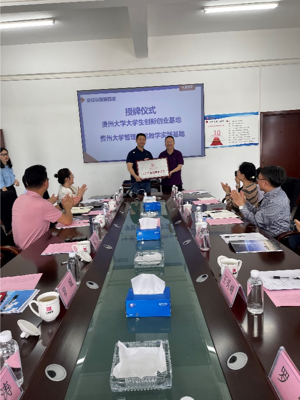 在长通电气三楼会议室举行座谈交流会,座谈会由李烨院长主持。座谈会上,漆思副校长表达学校就业创业行动,介绍了学校2022届毕业生就业的总体情况及本次走访企业的目的,希望长通集团这样的优质企业多留住贵州大学的毕业生,与贵州大学开展全方位的合作,促进产学研发展共赢。学院党委副书记洪影秋就管理学院本科生就业情况进行补充发言。学院院长李烨对贵州长通集团给予乐动官方网站的支持表示感谢,希望张钊董事长校友常回家看看,加强合作交流。随后,贵州大学副校长漆思为贵州长通集团授牌,授予“贵州大学大学生创新创业基地”,乐动官方网站党委书记王秀峰为贵州长通集团授予“乐动官方网站教学实践基地”。贵州长通集团领导和工作人员分别就企业发展及人才岗位需求进行了深入的互动交流。