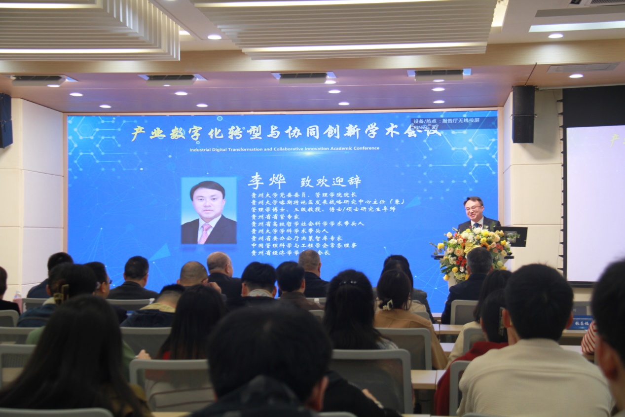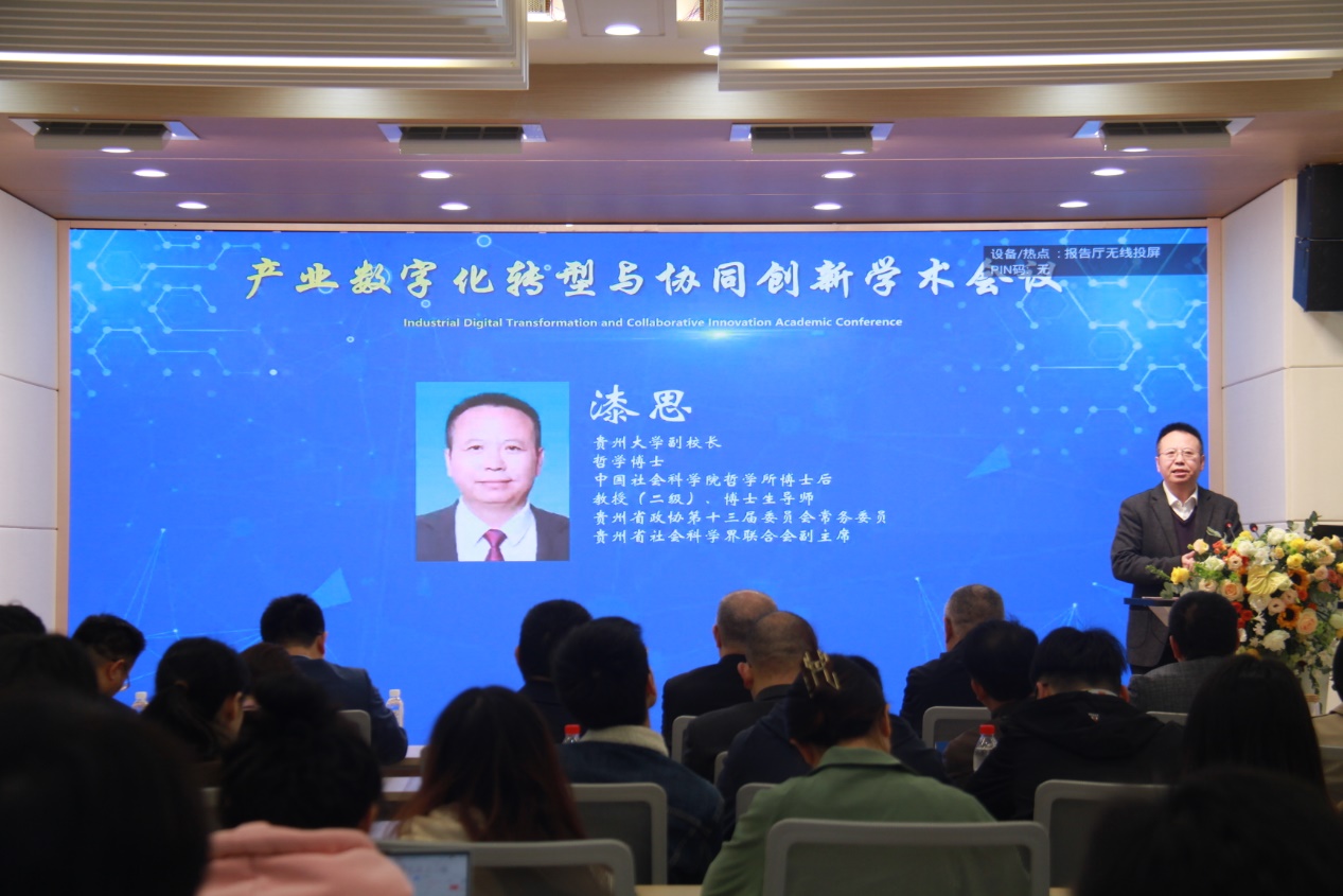 贵州大学漆思副校长首先介绍了贵州大学的情况,并表示数字化转型是中国特色社会主义道路发展的必然选择,我们应该紧跟其脚步,要大力推动企业迈向数字化技术的创造性转化和创新性发展。他强调,筹办本次学术交流会议的目的是进一步探讨数字时代下的挑战与机遇,为更好的推动企业进行数字化转型助力,为我省乃至我国企业的高质量发展筑基。