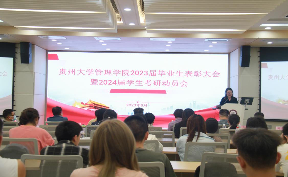 2023年6月8日中午13:00,乐动官方网站2023届毕业生表彰大会暨2024届学生考研动员大会在管理学院致远楼三楼报告厅举行。贵州大学党委委员、管理学院院长李烨,贵州大学正处级组织员、管理学院党委副书记(主持党委工作)周莉莉,管理学院副院长李本光,管理学院党委副书记邓琳,管理学院副院长宋山梅及各系主任、学生科全体辅导员、毕业班班主任出席本次表彰大会,本次会议由管理学院党委副书记邓琳主持。