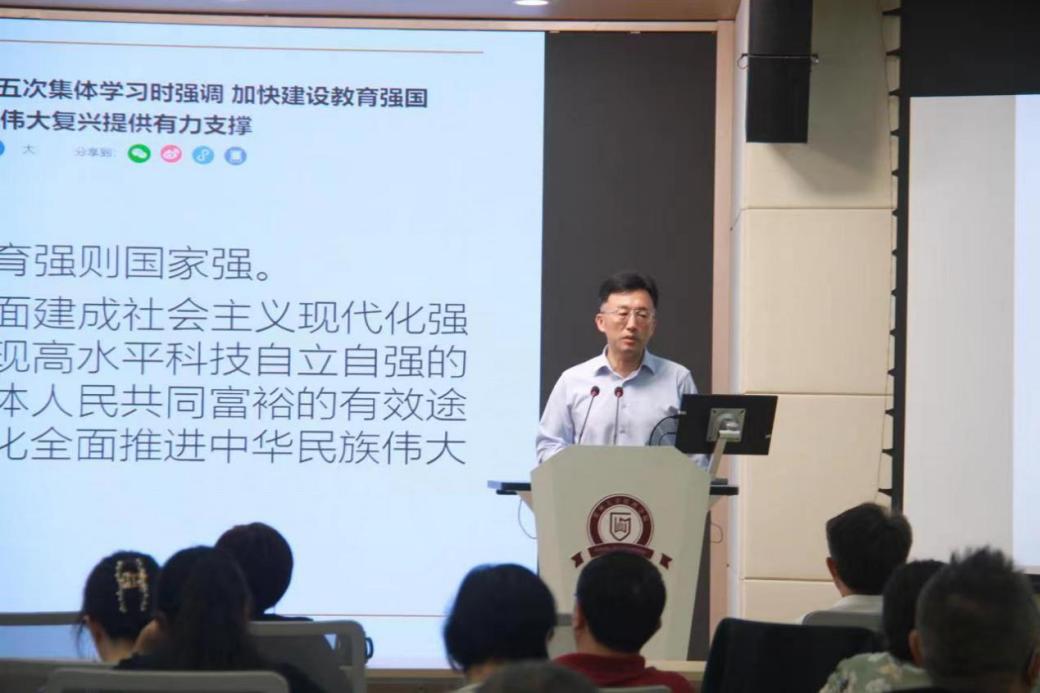校党委正处级组织员、院党委副书记(主持党委工作)周莉莉传达了第28次全国高校党的建设工作会议、贵州大学关于加强新形势下宗教工作的实施意见、意识形态工作的相关文件精神,强调在发展高校教育的过程当中要更加重视党员教师自身的意识形态问题,同时,党员同志需要积极自我审查,确保不出现意识形态问题,提高持续学习的能力,切实将意识形态工作落到实处。随后,周莉莉书记领学中共中央政治局关于建设教育强国第五次集体学习的理论精神,同时带领全体教职工进一步深入学习党的二十大报告。她强调,学院要全面加强思想教育,建设良好的师德师风;要响应国家建立教育强国,为培养一代又一代德智体美劳全面发展的社会主义建设者和接班人而不懈努力。