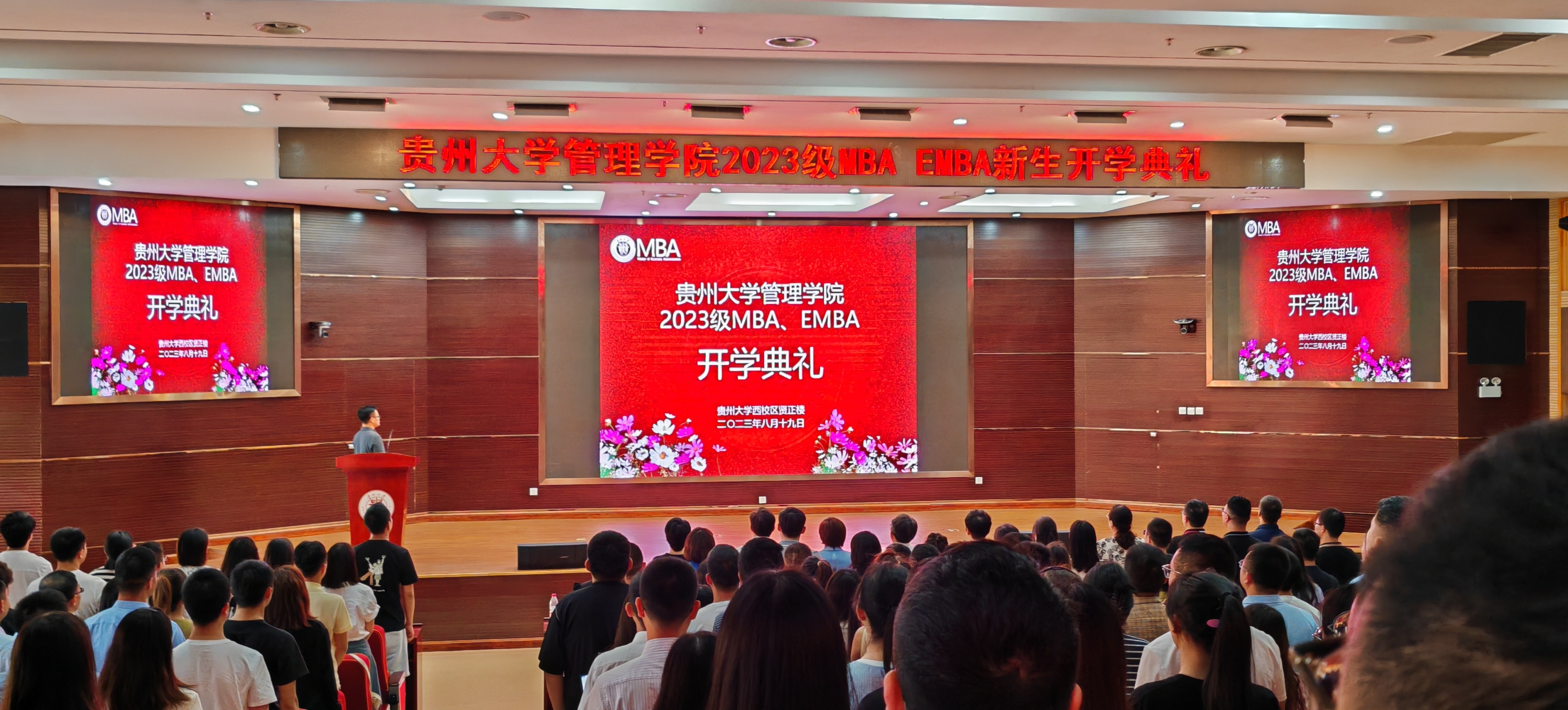 2023年8月19日上午,乐动官方网站MBA教育中心在西校区贤正楼107报告厅隆重举行了“乐动官方网站2023级工商管理硕士(MBA暨EMBA)开学典礼”。乐动官方网站院长李烨教授,贵州大学党委正处级组织员、管理学院党委副书记(主持党委工作)周莉莉教授,管理学院副院长李本光教授,副院长宋山梅教授,副书记邓琳老师,MBA中心主任项凯标教授,MBA导师代表刘遗志教授,管理学院各科室负责人、MBA教育中心全体老师、班主任,2023级MBA、EMBA新生共460余名参加了开学典礼。典礼由副院长李本光教授主持。