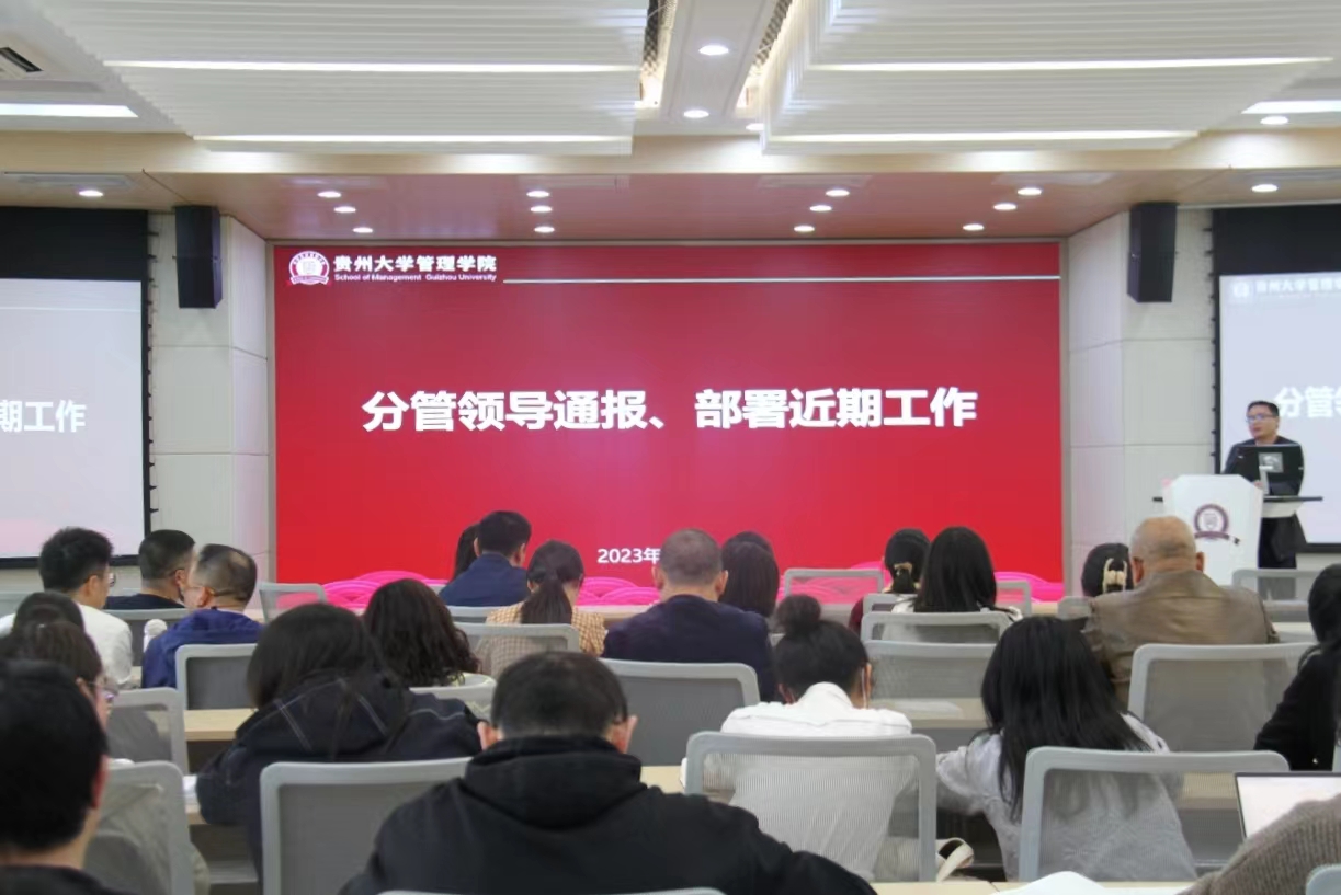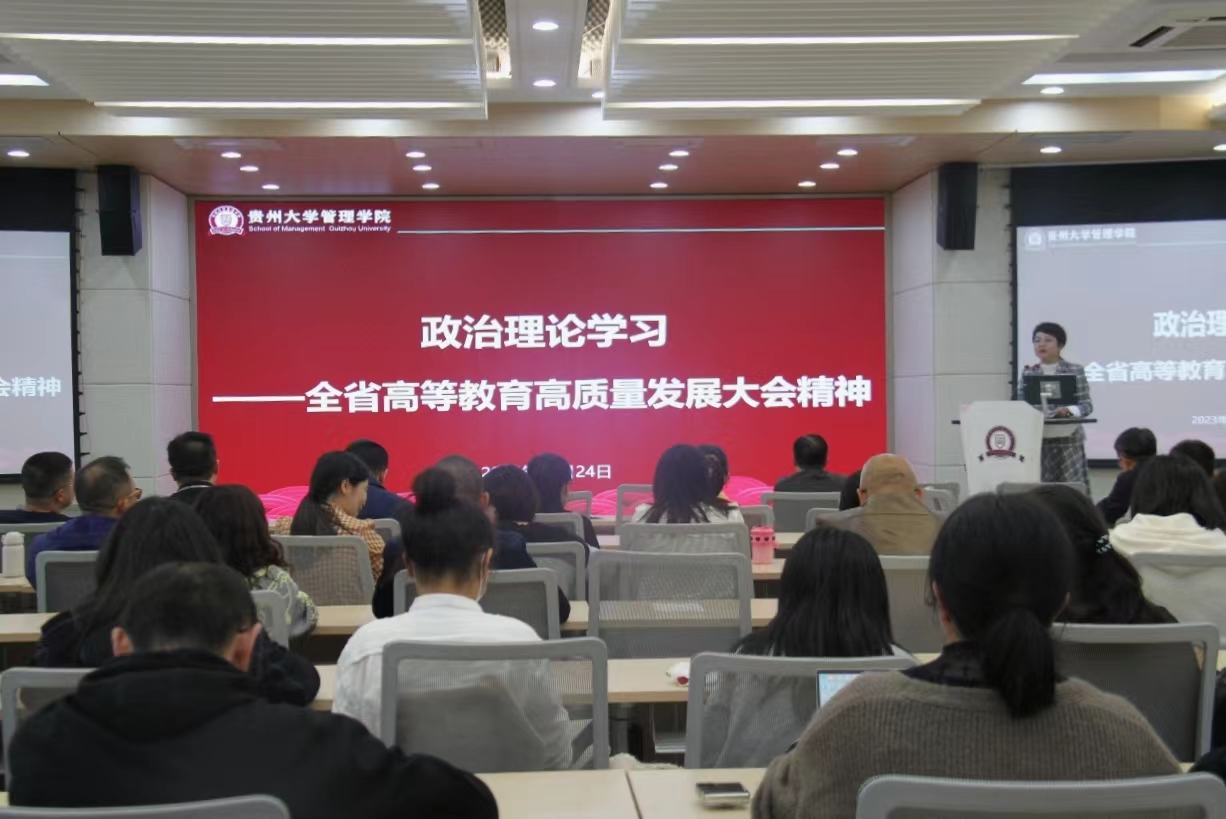 会议第一项议程是由贵州大学党委正处级组织员、管理学院党委副书记(主持党委工作)周莉莉教授首先传达了今年10月7日至10月8日在北京召开的全国宣传思想工作会议精神,同时详细介绍了10月18日召开的全省高等教育高质量发展大会的学习内容,特别引用了省委书记徐麟在会上的讲话,强调要充分考虑我省人口结构变化和高质量发展需求,深入推进高校布局调整,集中力量做强贵州大学,推动本科高校突出优势、错位发展,推动高职院校产教融合、扩容提质,加快形成支撑现代化建设的高等教育新格局。